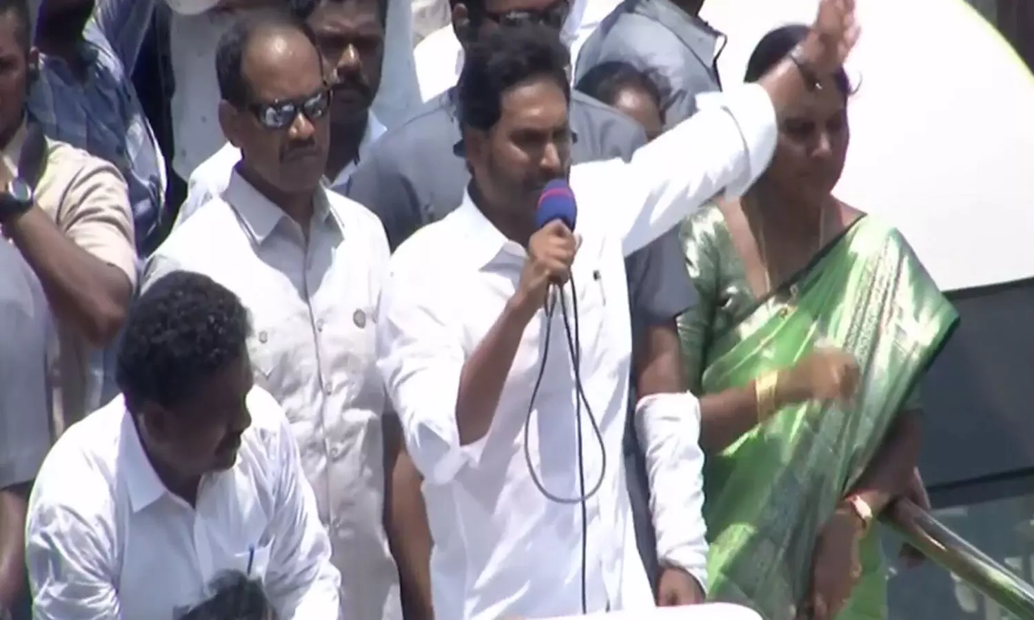 రాష్ట్రానికి మూడుసార్లు ముఖ్యమంత్రిగా చేసిన చంద్రబాబు పేదలకు ఏం చేశారని వైసీపీ అధినేత జగన్ ప్రశ్నించారు. నరసాపురంలో జరిగిన సభలో ఆయన ప్రసంగించారు. పదిరోజుల్లో కురుక్షేత్ర యుద్ధం జరగబోతుందని, జగన్ కు ఓటేస్తే పధకాలు కొనసాగుతాయని, చంద్రబాబుకు ఓటేస్తే సంక్షేమ పథకాలకు ముగింపు తప్పదని హెచ్చరించారు. గత యాభై ఎనిమిది నెలల కాలంలోనే ఇన్ని పథకాలు ఇచ్చిన నేత ఎవరైనా ఉన్నారా? అని జగన్ ప్రశ్నించారు. గతంలో ఎప్పుడైనా అవ్వాతాతలకు ఇంటి వద్దకు పింఛను తీసుకువచ్చిన పరిస్థితి ఉందా? అని అడిగారు. ప్రభుత్వ పాఠశాలల్లో నాడు నేడు కింద బాగుచేసి ఇంగ్లీష్ మీడియాన్ని ప్రవేశపెట్టామని తెలిపారు.