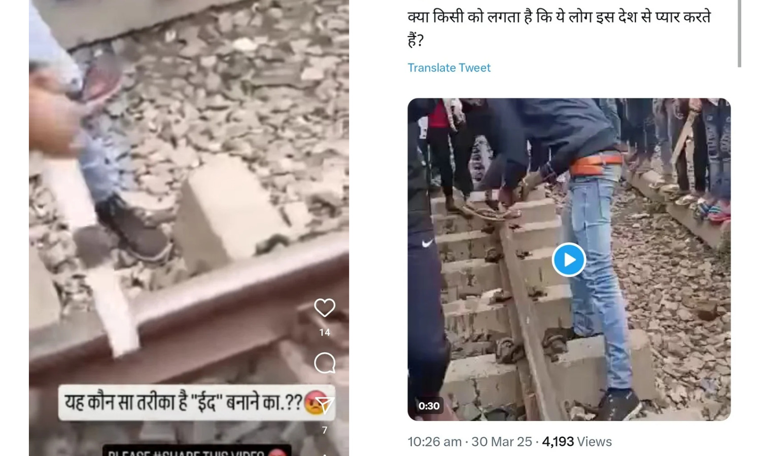 ଉକ୍ତ ଭିଡିଓଟିର କିଛି ଅଂଶ ଭିନ୍ନ ଏକ କୋଣରୁ ସୁଟ୍ ହୋଇଥିବା ବେଳେ । ସାମଞ୍ଜସ୍ୟ ଜାଣିବାପାଇଁ ଆମେ ଦୁଇଟିଜାଙ୍କ ଭିଡିଓ ତୁଳନା କରିଥିଲୁ । ତୁଳନାରୁ ଉଭୟ ଭିଡିଓରେ ରେଳ ଟ୍ରାକକୁ ନଷ୍ଟ କରୁଥିବା ବ୍ୟକ୍ତିଙ୍କ ଜୋତା ପ୍ୟାଣ୍ଟ ଏବଂ ସାର୍ଟରକିଛି ଅଂଶ ସମାନ ଥିବାର ଦେଖିବାକୁ ମିଳିଛି । ତେଣୁ ଉଭୟ ଭିଡିଓ ଗୋଟିଏ ବୋଲି ଜାଣିବାକୁ ପାଇଥିଲୁ ।