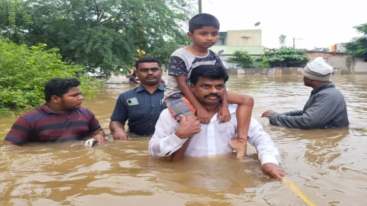 అనంతపురం, సత్యసాయి జిల్లాలో పలు ప్రాంతాల్లో కురిసిన భారీ వర్షాలకు చాలా ప్రాంతాల్లో జలమయమయ్యాయి . రాయదుర్గం, కళ్యాణదుర్గం, ఉరవకొండ ప్రాంతాల్లో కురిసిన వర్షానికి పలు ప్రాంతాల్లో పంట పొలాలు నీట మునిగాయి. రుద్రంపేట, విశ్వశాంతినగర్, చంద్రబాబు కొట్టాల గౌరవ్ రెసిడెన్సీ కాలనీలు నీటమునిగాయి. శివారు ప్రాంతాల్లో ఇళ్లలోకి వరద నీరు చేరింది. ఆలమూరు చెరువు గట్టు తెగిపోవడంతో ఉధృతంగా వరద నీరు ప్రవహిస్తోంది. మంగళవారం రాత్రి నుంచి అనంతపురం, శ్రీసత్యసాయి జిల్లాల్లో కురుస్తున్న భారీ వర్షం కారణంగా వాగులు, వంకలు పొర్లిపొంగుతున్నాయి. భారీ వర్షాలు కురుస్తున్న క్రమంలో అనంతపురం నగరాన్ని వరద నీరు ముంచెత్తింది. వరద నీటితో అనంతపురం నగరంలోని రుద్రంపేట, నడిమివంక, ఆదర్శ్నగర్ కాలనీలు జలమయమయ్యాయి. అధికారులు దాదాపు 300 మందిని సురక్షిత ప్రాంతాలకు తరలించారు. రంగస్వామయి నగర్లో చిక్కుకున్న కాలనీవాసులను బోట్ల సాయంతో రక్షించేందుకు అధికారులు చర్యలు తీసుకుంటున్నారు. భారీ వర్షాల నేపథ్యంలో ఎమ్మెల్యేలు అనంత వెంకటరామిరెడ్డి, తోపుదుర్తి ప్రకాష్ రెడ్డి, ఎంపీ గోరంట్ల మాధవ్ సహాయక చర్యలను పర్యవేక్షిస్తున్నారు. దీంతో పలు ప్రాంతాల్లో ఇరుక్కుపోయిన వారిని ఎంపీ గోరంట్ల మాధవ్ స్వయంగా రక్షించారు. జాకీర్ కొట్టాల ప్రాంతంలో వరద ముంపు ప్రాంతాల్లో చిక్కుకున్న బాలున్ని మోసుకుంటూ సురక్షిత ప్రాంతానికి తీసుకెళ్లారు ఎంపీ గోరంట్ల మాధవ్. ఆయన ఓ పిల్లాడిని తన భుజాల మీద మోసుకుంటూ తీసుకుని వచ్చిన ఫోటో ప్రస్తుతం సోషల్ మీడియాలో వైరల్ అవుతోంది.