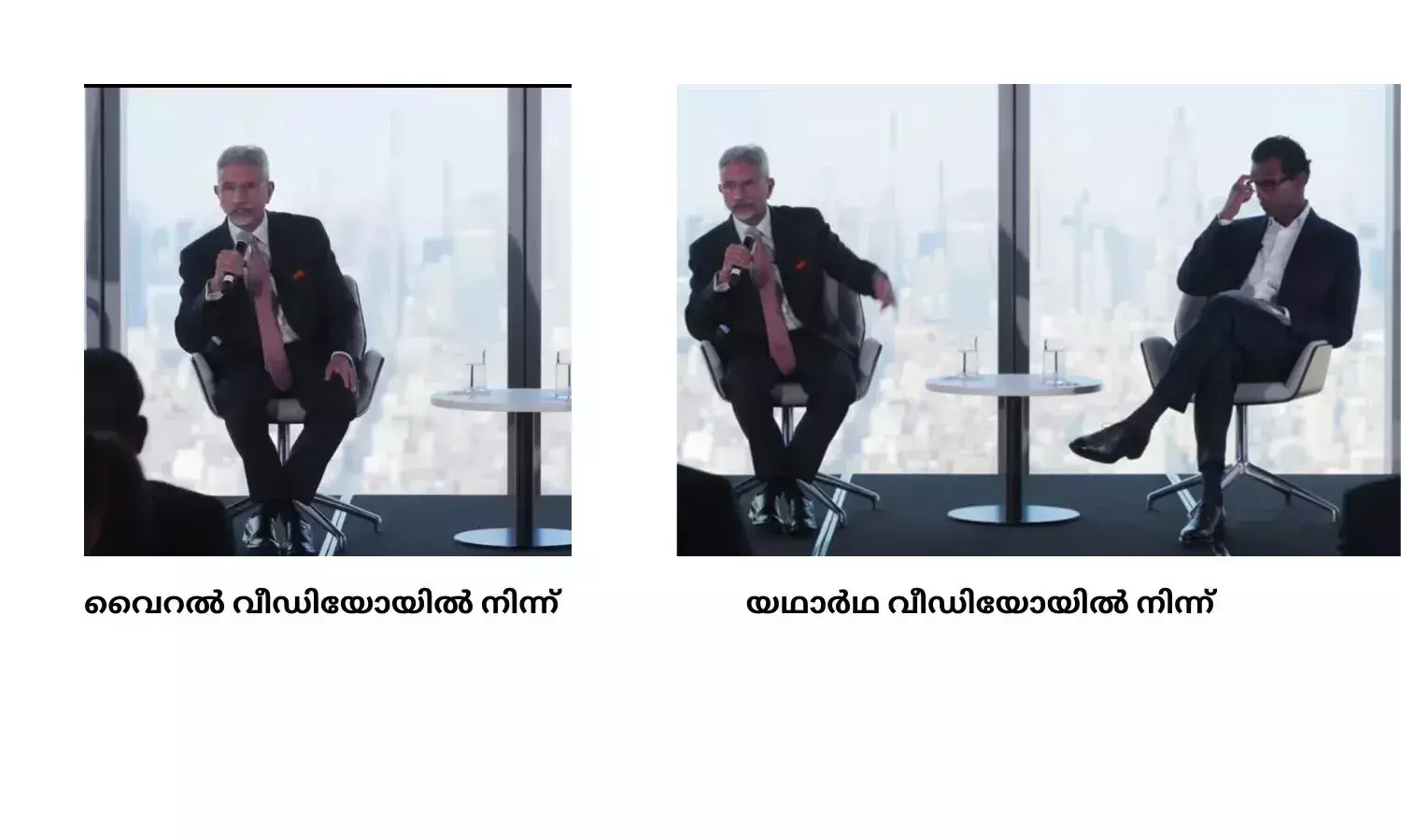 വൈറൽ വീഡയോയിലെ ഭാഗം വീഡിയോയുടെ 43 മിനിറ്റ് അഞ്ച് സെക്കൻഡിൽ കാണാം . എന്നിരുന്നാലും, ഇന്ത്യ പാകിസ്താനോട് മൂന്ന് റഫാൽ ജെറ്റുകൾ നഷ്ടപ്പെട്ടതായി ജയ്ശങ്കർ പരാമർശിക്കുന്നില്ലന്ന് വ്യക്തമാണ്. യഥാർത്ഥ വീഡിയോയിൽ "നിങ്ങൾക്കറിയാവുന്ന കാര്യമാണ്, ആ രാത്രിയിൽ പാകിസ്താൻ തങ്ങളെ വലിയ തോതിൽ ആക്രമിച്ചു. അതിനുശേഷം തങ്ങൾ വളരെ വേഗത്തിൽ പ്രതികരിച്ചു. പിറ്റേന്ന് രാവിലെ, മിസ്റ്റർ റൂബിയോ തന്നെ വിളിച്ച് പാകിസ്താൻ ചർച്ചയ്ക്ക് തയ്യാറാണെന്ന് പറഞ്ഞു." എന്നാണ് ജയ്ശങ്കർ പറയുന്നത്. വൈറൽ വീഡിയോയിലെ ഭാഗം ഇവിടെ ഉണ്ടെങ്കിലും റഫാൽ നഷ്ടപ്പെട്ടതായി വിദേശകാര്യ മന്ത്രി പറയുന്നില്ല. " നമുക്ക് മൂന്ന് റാഫേൽ വിമാനങ്ങൾ പാകിസ്താനോട് നഷ്ടപ്പെട്ടിരുന്നു" എന്ന വരി യഥാർത്ഥ വീഡിയോയുടെ ഈ ഭാഗത്ത് കൂട്ടിച്ചേർത്തതാണെന്ന സൂചന ലഭിച്ചു.