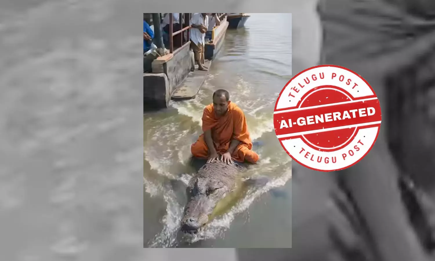 ଦାବିରେ ନାହିଁ କୌଣସି ସତ୍ୟତା । କୁମ୍ଭୀର ପିଠିରେ ପୂଜକ ବସିଥିବା ଭାଇରାଲ ଭିଡିଓଟି ଏଆଇ ଦ୍ୱାରା ନିର୍ମିତ ।