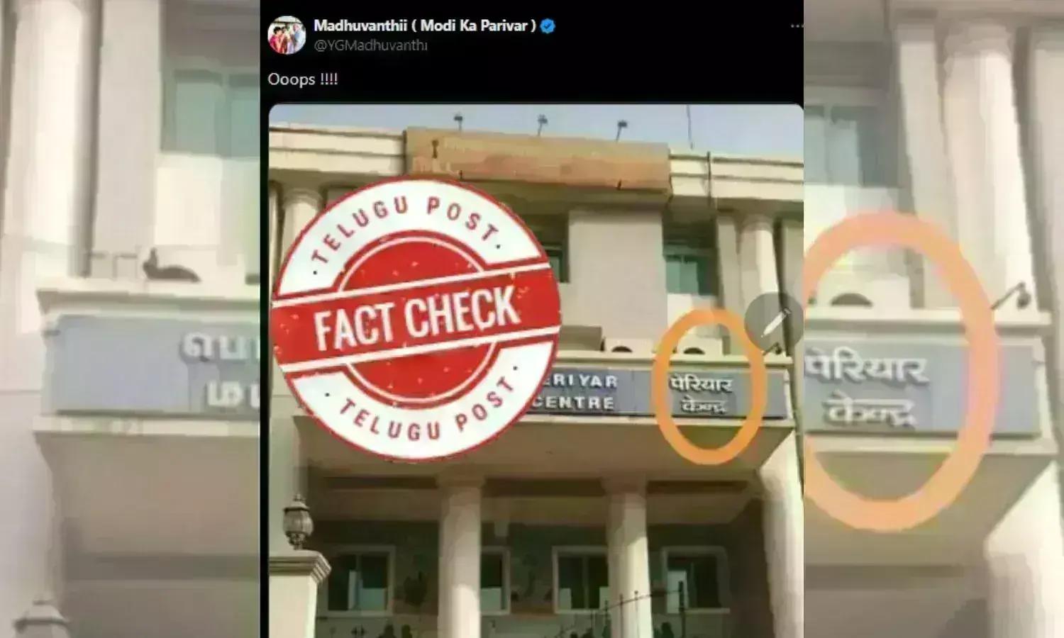 ത്രിഭാഷ നയത്തിൽ കടുത്ത എതിർപ്പ് ഉന്നയിക്കുന്ന തമിഴ്നാട് പെരിയാർ സെന്ററിന് ഹിന്ദിയിൽ പേര് നൽകിയെന്ന പ്രചാരണം തെറ്റിധരിപ്പിക്കുന്നതാണെന്ന് കണ്ടെത്തി. പെരിയാർ സെന്റർ തമിഴ്നാട്ടിൽ അല്ലെന്നും ഡൽഹിയിലാണെന്നും അന്വേഷണത്തിൽ വ്യക്തമായി.