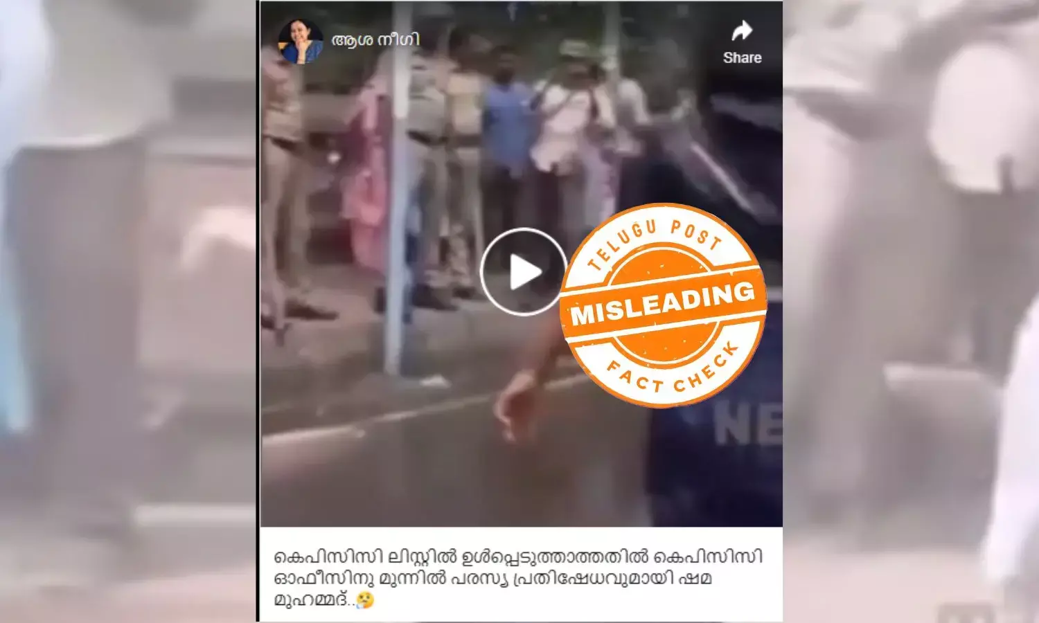പുനഃസംഘടന ലിസ്റ്റിൽ ഉൾപ്പെടുത്തതിൽ കെപിസിസി ഓഫീസിന് മുന്നിൽ ഡോക്ടർ ഷമ മുഹമ്മദിൻ്റെ പ്രതിഷേധം എന്ന തരത്തിലുള്ള പ്രചാരണം തെറ്റിധരിപ്പിക്കുന്നതാണെന്ന് കണ്ടെത്തി. 2024 ൽ കണ്ണൂര് കലക്ട്രേറ്റിലേക്ക് കോണ്ഗ്രസ് നടത്തിയ മാര്ച്ചില് നിന്നുള്ള ദൃശ്യമാണ് പ്രചരിക്കുന്നതെന്ന് അന്വേഷണത്തിൽ വ്യക്തമായി.