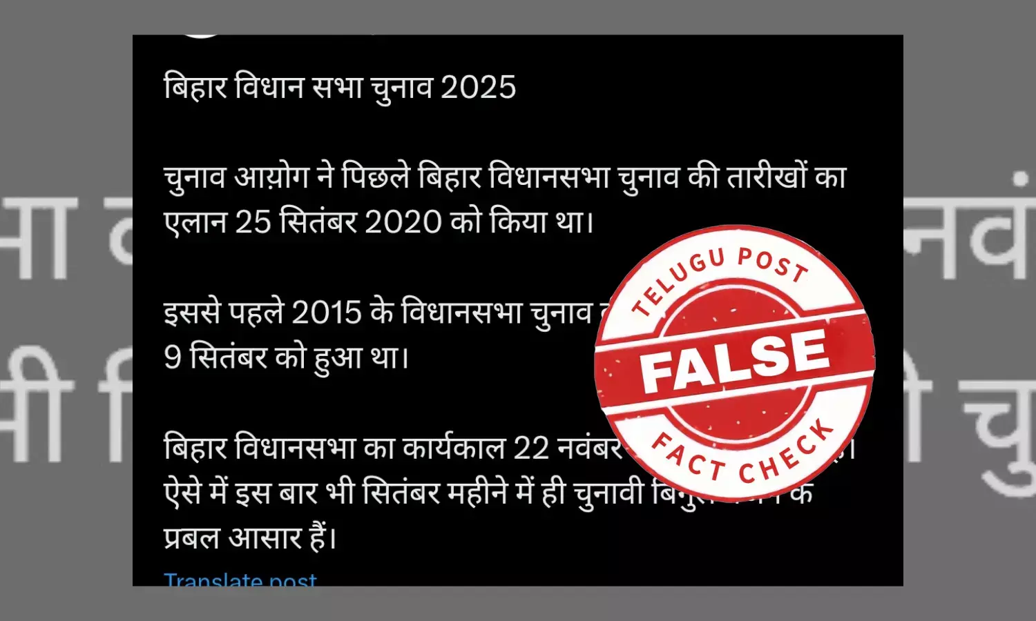 ଦାବିରେ ନାହିଁ କୌଣସି ସତ୍ୟତା । ଖବର ପ୍ରସାରଣ ଅର୍ଥାତ ୪ ଜୁଲାଇ ୨୦୨୫ ପର୍ଯ୍ୟନ୍ତ ବିହାର ନିର୍ବାଚନକୁ ନେଇ କୌଣସି ତାରିଖ ଘୋଷଣା ହୋଇ ନାହିଁ ।