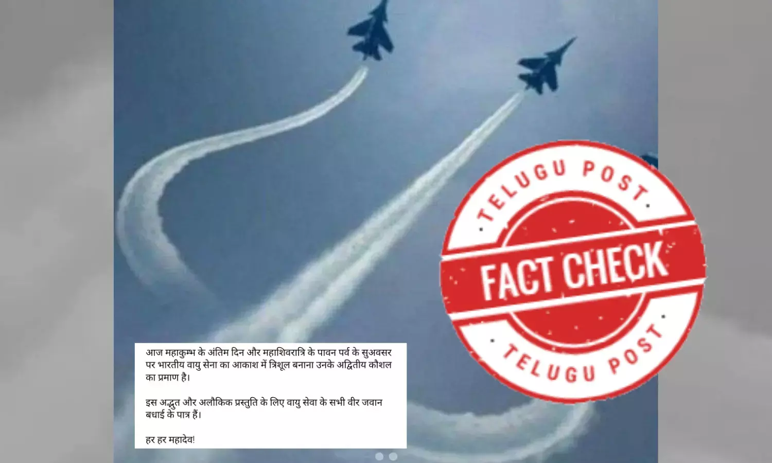 ବାୟୁସେନା ଦ୍ୱାରା ତ୍ରିଶୂଳ ରଚନା ଅନ୍ୟ କୌଣସି ସ୍ଥାନରେ ହୋଇଥାଇ ପାରେ, କିନ୍ତୁ ଭାଇରାଲ ଫଟୋଟି ବହୁ ପୁରୁଣା ତେଣୁ ମହାକୁମ୍ଭ ସହ ନାହିଁ କୌଣସି ସମ୍ପର୍କ ।