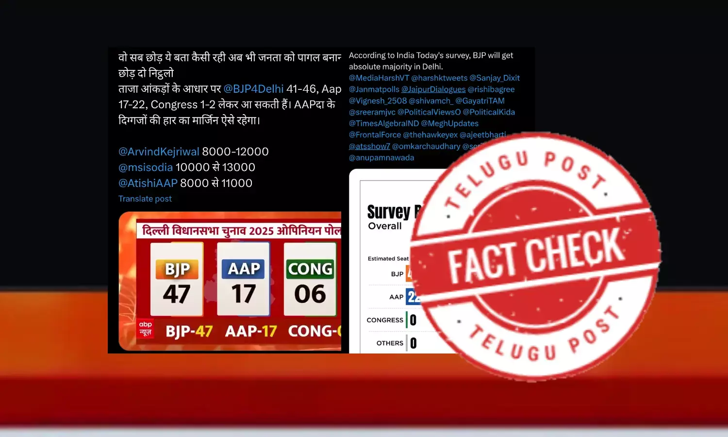ଫ୍ୟାକ୍ଟ ଚେକ୍: ବିଭିନ୍ନ ଗଣମାଧ୍ୟମର ଗ୍ରାଫିକ୍ସ ହେଲା ଭାଇରାଲ, ଦିଲ୍ଲୀ ନିର୍ବାଚନର ଆସିଲା ସର୍ଭେ
