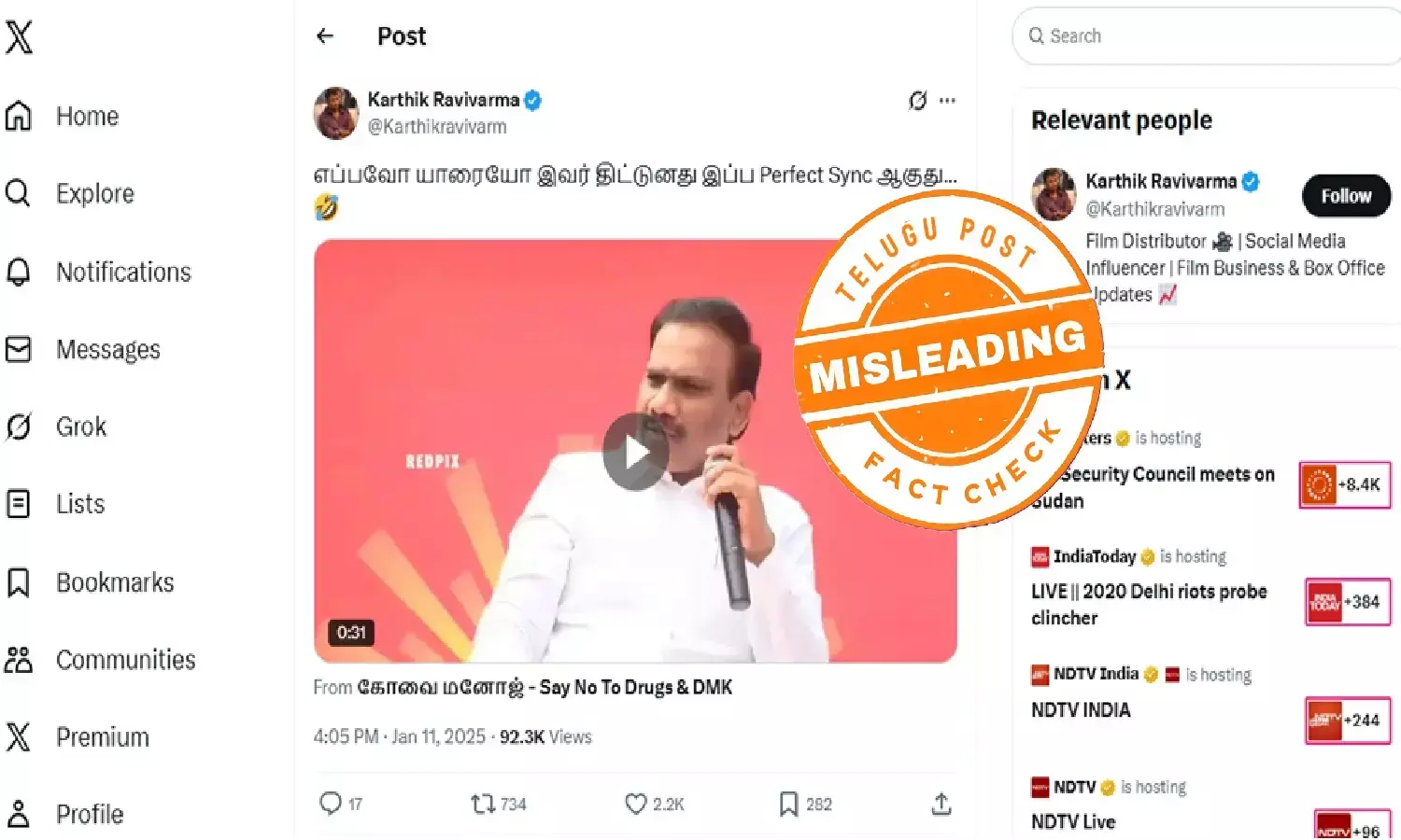 FactCheck : வைரலான ஆ.ராஜாவின் காணொளி முழுமையான ஒன்றல்ல. அரசியல் சூழலுக்கு ஏற்றவாறு திருத்தி மாற்றம் செய்யப்பட்டுள்ளது. இந்த பதிவு மக்களை தவறாக வழிநடத்தக்கூடியது.