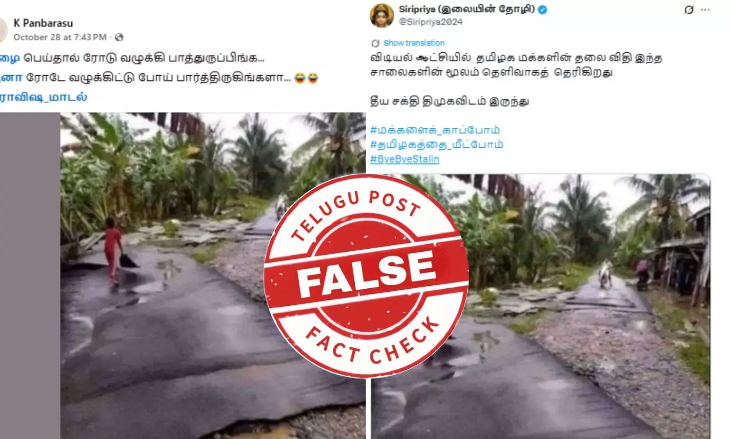 தமிழகத்தில் மழையில் பெயர்ந்த சாலை என பரவும் புகைப்படம் : உண்மை என்ன?