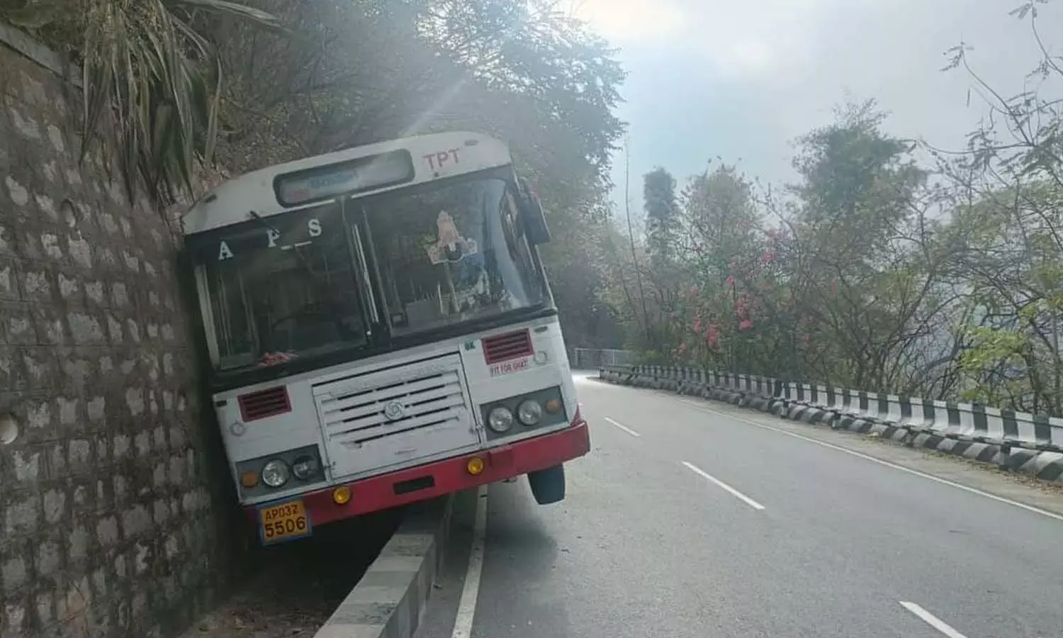 తిరుమల రెండో ఘాట్ రోడ్డులో ప్రమాదం తప్పింది. ఆర్టీసీ బస్సు గోడను ఢీకొట్టింది. ఈ ఘటనలో కొందరు స్వల్పగాయాలతో బయటపడ్డారు