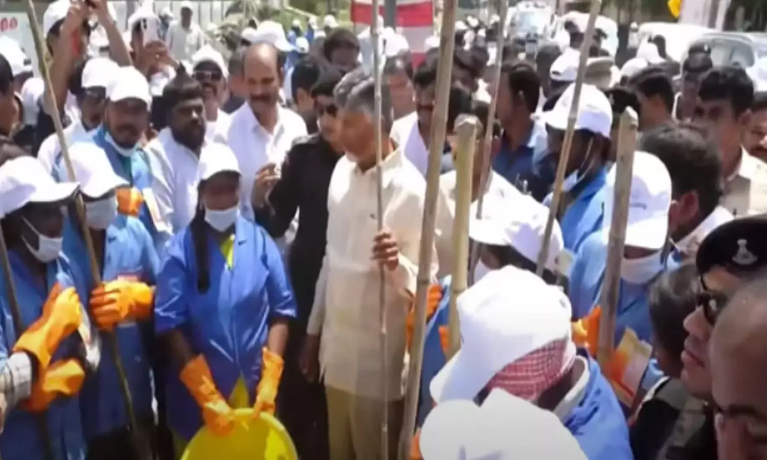 స్వచ్ఛత హీ సేవా కార్యక్రమంలో చంద్రబాబు