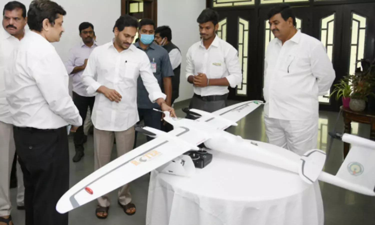 భూసర్వే కోసం అత్యాధుని సాంకేతి పరిజ్ఞానంతో రూపొందించిన డ్రోన్ ముఖ్యమంత్రి జగన్ పరిశీలించారు. ఈ కార్యక్రమంలో మంత్రులు ధర్మాన కృష్ణదాస్, పెద్దిరెడ్డి రామచంద్రారెడ్డి, బొత్స సత్యనారాయణ, చీఫ్ సెక్రటరీ సమీర్ శర్మ, ముఖ్యమంత్రి సలహాదారు అజయ్ కల్లం తదితరులు పాల్గొన్నారు.