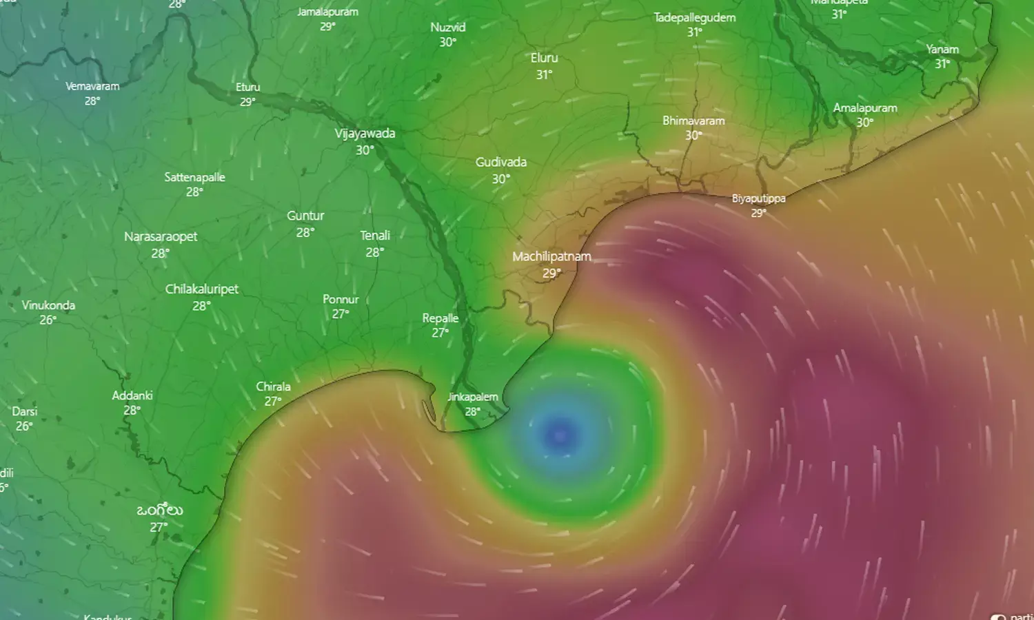 ప్రస్తుతం తుఫాను మచిలీపట్నానికి 50 కిలోమీటర్లు, కాకినాడకు 150, విశాఖపట్నంకు 310, గోపాలపూర్ కు 530, పూరీకి 640 కిలోమీటర్ల..