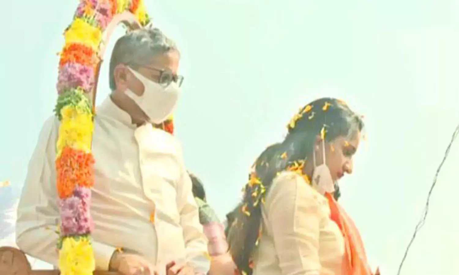 సుప్రీంకోర్టు చీఫ్ జస్టిస్ ఎన్వీ రమణ తన స్వగ్రామమైన పొన్నవరం లో పర్యటిస్తున్నారు. ఆయనకు గ్రామ ప్రజలు సాదరంగా స్వాగతం పలికారు. ప్రత్యేకంగా అలంకరించిన ఎడ్లబండిపై జస్టిస్ ఎన్వీ రమణ దంపతులను ఊరేగిపుంగా మేళతాళాల మధ్య గ్రామంలోకి తీసుకెళ్లారు. చీఫ్ జస్టిస్ గా నియమితులైన తర్వాత తొలిసారి జస్టిస్ ఎన్వీరమణ స్వగ్రామానికి రావడంతో గ్రామస్థులు ఆనందం వ్యక్తం చేస్తున్నారు.
