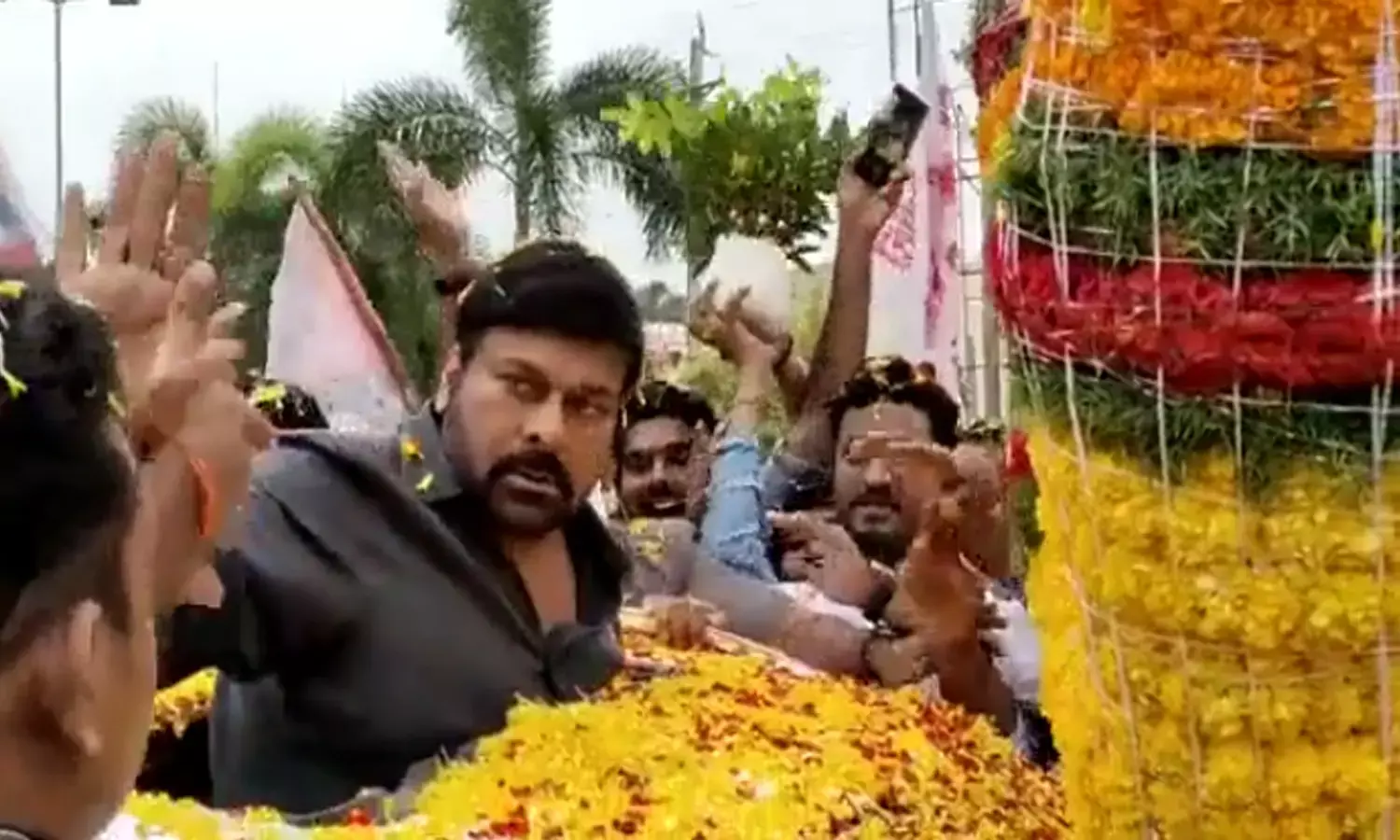 భీమవరంలో జరిగే అల్లూరి సీతారామరాజు విగ్రహావిష్కరణ కార్యక్రమానికి చిరంజీవి హాజరుకానున్నారు. చిరంజీవి హైదరాబాద్ నుంచి బయలుదేరి రాజమండ్రిలోని మధురపూడి విమానాశ్రయం చేరుకున్నారు. ఈ సంధర్భంగా చిరంజీవిని అభిమానులు పూల దండలతో ముంచెత్తారు. చిరంజీవిని చూసేందుకు వందల సంఖ్యలో అభిమానులు చేరుకుని ఆయనకు స్వాగతం పలికేందుకు వచ్చారు. విమానాశ్రయం వద్ద తొక్కిసలాట జరగకుండా పోలీసులు బందోబస్తును ఏర్పాటు చేశారు.