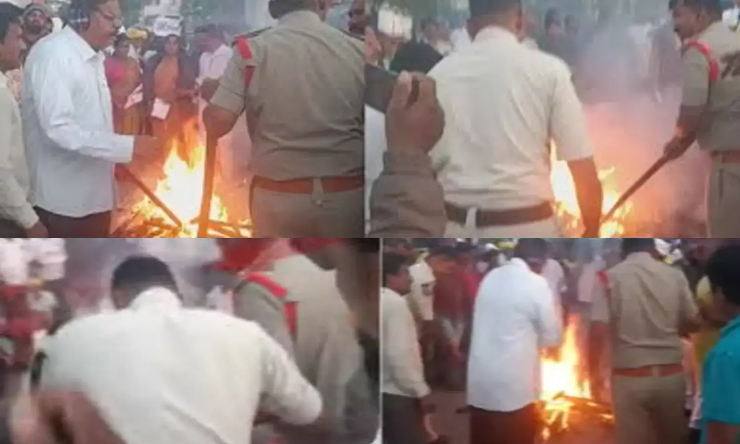 పోలీసులు సంప్రదాయ భోగి మంటలను బూట్లతో ఆర్పివేయడంతో స్థానికులు ఆగ్రహం వ్యక్తం చేశారు.