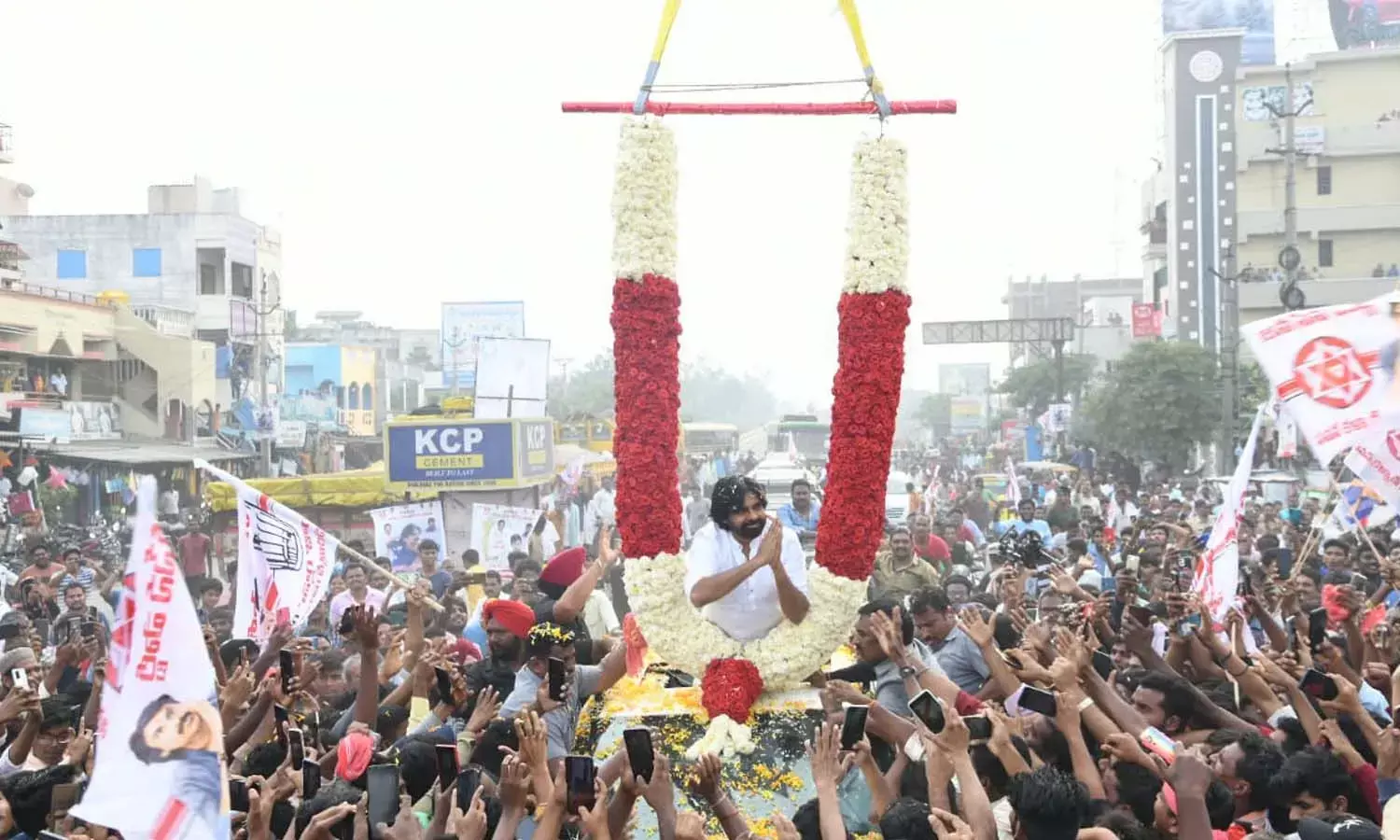 జనసేన అధినేత పవన్ కల్యాణ్ సత్తెనపల్లికి చేరుకున్నారు. గుంటూరు శివారు నల్లపాడు వద్ద పవన్ అభిమానులు గజమాలతో సత్కరించారు