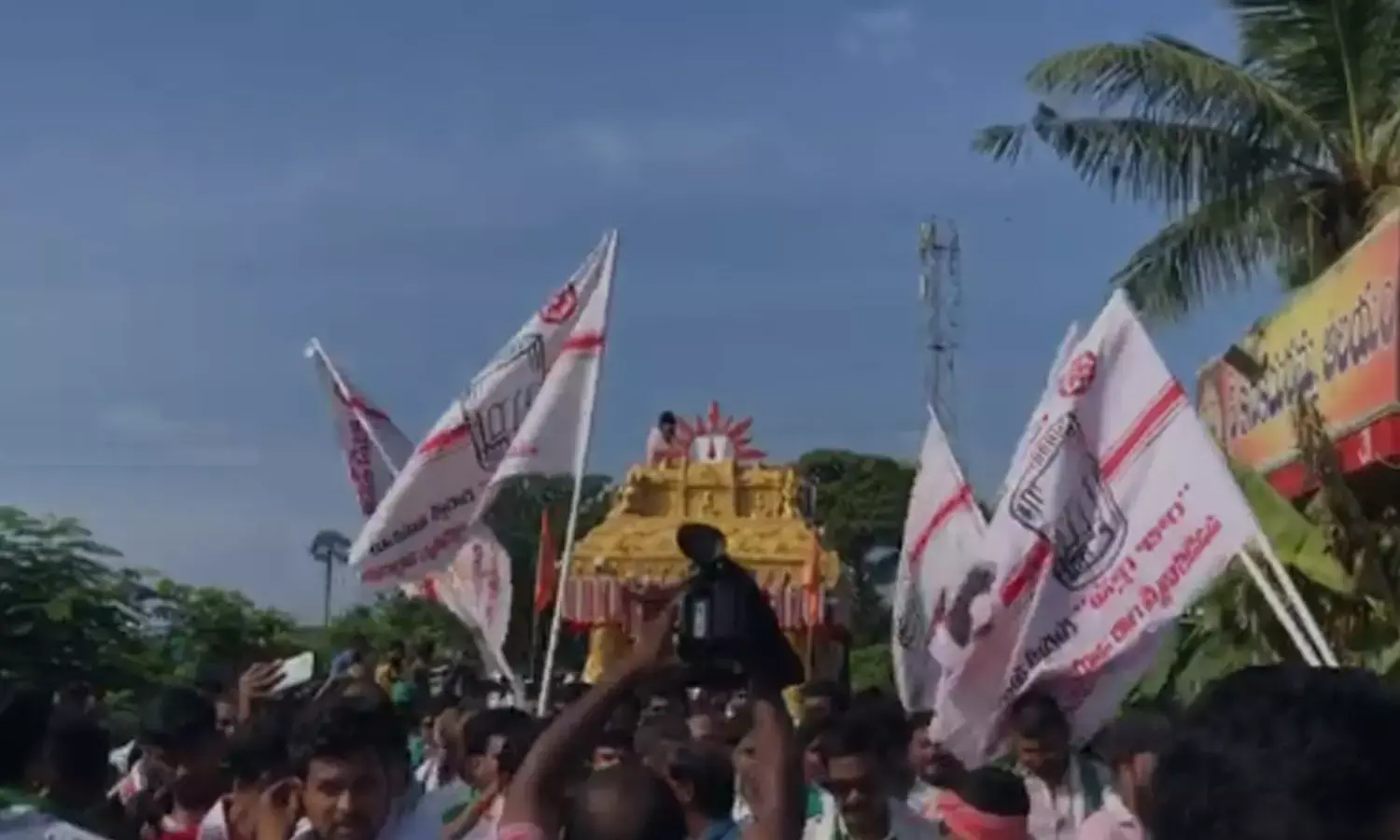 రైతుల మహా పాదయాత్రకు ఏలూరు జిల్లాలో ప్రతి చోటా ఘన స్వాగతం లభిస్తుంది. జనసేన కార్యకర్తలు కూడా తమ జెండాలతో రైతుల మహాపాదయాత్రలో పాల్గొన్నారు. అడుగడుగునా ప్రజలు స్వచ్ఛందంగా వచ్చి వారికి సంఘీభావం తెలుపుతున్నారు. అమరావతిని ఏకైక రాజధానిగా కొనసాగించాలంటూ చేస్తున్న ఈ యాత్ర అరసవిల్లి వరకూ కొనసాగనుంది. నేడు రైతుల మహాపాదయాత్ర పదహారో రోజుకు చేరుకుంది.