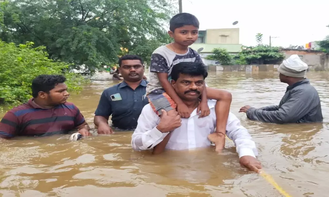 అనంతపురం, సత్యసాయి జిల్లాలో పలు ప్రాంతాల్లో కురిసిన భారీ వర్షాలకు చాలా ప్రాంతాల్లో జలమయమయ్యాయి . రాయదుర్గం, కళ్యాణదుర్గం, ఉరవకొండ ప్రాంతాల్లో కురిసిన వర్షానికి పలు ప్రాంతాల్లో పంట పొలాలు నీట మునిగాయి. రుద్రంపేట, విశ్వశాంతినగర్, చంద్రబాబు కొట్టాల గౌరవ్ రెసిడెన్సీ కాలనీలు నీటమునిగాయి. శివారు ప్రాంతాల్లో ఇళ్లలోకి వరద నీరు చేరింది. ఆలమూరు చెరువు గట్టు తెగిపోవడంతో ఉధృతంగా వరద నీరు ప్రవహిస్తోంది. మంగళవారం రాత్రి నుంచి అనంతపురం, శ్రీసత్యసాయి జిల్లాల్లో కురుస్తున్న భారీ వర్షం కారణంగా వాగులు, వంకలు పొర్లిపొంగుతున్నాయి. భారీ వర్షాలు కురుస్తున్న క్రమంలో అనంతపురం నగరాన్ని వరద నీరు ముంచెత్తింది. వరద నీటితో అనంతపురం నగరంలోని రుద్రంపేట, నడిమివంక, ఆదర్శ్నగర్ కాలనీలు జలమయమయ్యాయి. అధికారులు దాదాపు 300 మందిని సురక్షిత ప్రాంతాలకు తరలించారు. రంగస్వామయి నగర్లో చిక్కుకున్న కాలనీవాసులను బోట్ల సాయంతో రక్షించేందుకు అధికారులు చర్యలు తీసుకుంటున్నారు. భారీ వర్షాల నేపథ్యంలో ఎమ్మెల్యేలు అనంత వెంకటరామిరెడ్డి, తోపుదుర్తి ప్రకాష్ రెడ్డి, ఎంపీ గోరంట్ల మాధవ్ సహాయక చర్యలను పర్యవేక్షిస్తున్నారు. దీంతో పలు ప్రాంతాల్లో ఇరుక్కుపోయిన వారిని ఎంపీ గోరంట్ల మాధవ్ స్వయంగా రక్షించారు. జాకీర్ కొట్టాల ప్రాంతంలో వరద ముంపు ప్రాంతాల్లో చిక్కుకున్న బాలున్ని మోసుకుంటూ సురక్షిత ప్రాంతానికి తీసుకెళ్లారు ఎంపీ గోరంట్ల మాధవ్. ఆయన ఓ పిల్లాడిని తన భుజాల మీద మోసుకుంటూ తీసుకుని వచ్చిన ఫోటో ప్రస్తుతం సోషల్ మీడియాలో వైరల్ అవుతోంది.