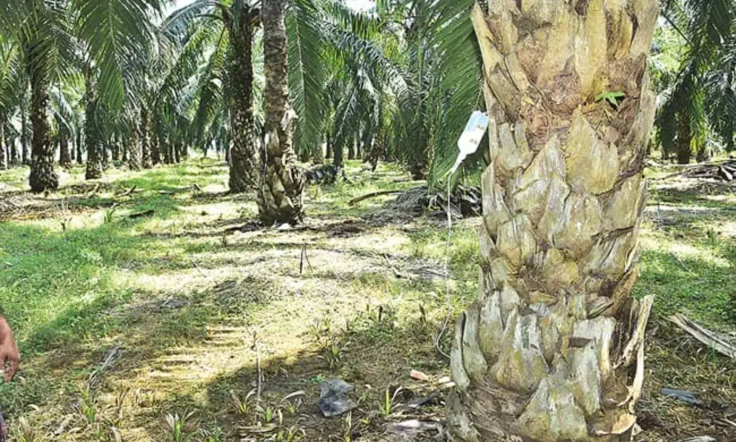 ఆయిల్ పామ్ చెట్లను సాగు చేయడం అంత ఆషామాషీ కాదు. ఎన్నో సవాళ్లు ఎదురవుతూ ఉంటాయి. వాటిని అధిగమించడానికి రైతులు ఎన్నో ప్రయత్నాలు చేస్తూ ఉంటారు. ఖమ్మం జిల్లా కొణిజర్ల మండలం లాలాపురానికి చెందిన రైతు పాషా ప్రస్తుతం అలాంటి పనే చేస్తున్నారు. ఆయన ఆయిల్పామ్ తోటలో చెట్లకు గానోడెర్మా తెగులు సోకింది. దీంతో వేరు, కాండం దెబ్బతింటోంది. దీంతో చెట్లను కాపాడడానికి ఆయన సెలైన్ ను ఉపయోగిస్తూ ఉన్నారు. ఆయిల్పామ్ చెట్టుకు రంధ్రం చేసి 200 ఎంఎల్ నీటిలో హెక్సాకోనజోల్ను 20 ఎంఎల్ కలిపి సెలైన్ ద్వారా కాండానికి అందిస్తున్నారు. ఈ చికిత్సతో మొక్క చనిపోకుండా సాధారణ స్థితికి తీసుకురావచ్చట.