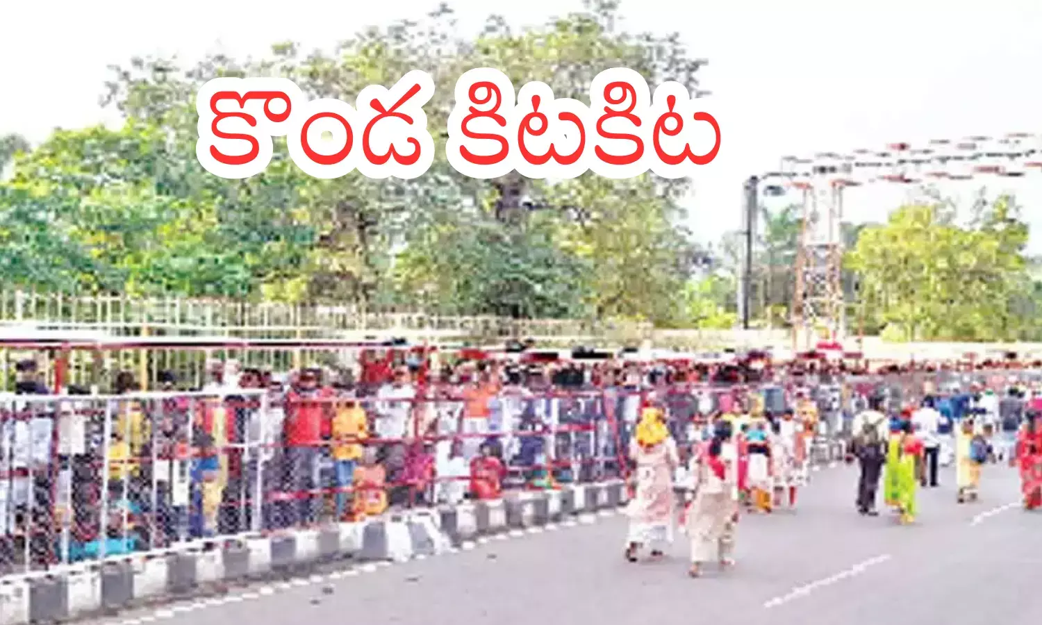 ఈరోజు కూడా తిరుమలలోని వైకుంఠం క్యూ కాంప్లెక్స్ లోని అన్ని కంపార్ట్ మెంట్లు భక్తులతో నిండిపోయాయి. శిలా తోరణం వరకూ భక్తుల క్యూ లైన్ విస్తరించి ఉంది. ఉచిత దర్శనం క్యూ లైన్ లోకి ఉదయం టోకెన్లు లేకుండా ప్రవేశించిన భక్తులకు శ్రీవారి దర్శనం ఇరవైగంటలకు పైగానే సమయం పడుతుందని తిరుమల తిరుపతి దేవస్థానం అధికారులు చెబుతున్నారు. టైమ్ స్లాట్ దర్శనం భక్తులకు ఆరు గంటలకు పైగానే సమయం పడుతుంది. మూడు వందల రూపాయల ప్రత్యేక దర్శనం టిక్కెట్ కొనుగోలు చేసిన భక్తులకు శ్రీవారి దర్శనం మూడు నుంచి నాలుగు గంటల సమయం పడుతుంది. నిన్న తిరుమల శ్రీవారిని 87,759 మంది భక్తులు దర్శించుకున్నారు.నిన్న తిరుమల శ్రీవారి హుండీ ఆదాయం 4.16 కోట్ల రూపాయలు వచ్చిందని అధికారులు వెల్లడించారు.