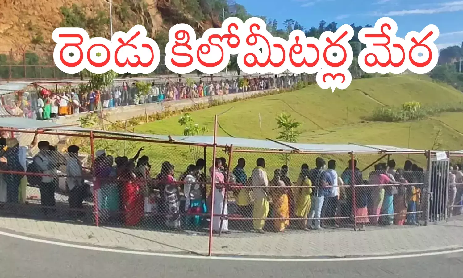 ఈరోజు తిరుమలలోని వైకుంఠం క్యూ కాంప్లెక్స్ లోని అన్ని కంపార్ట్ మెంట్లు భక్తులతో నిండిపో్యాయి. శిలా తోరణం వరకూ భక్తుల క్యూ లైన్ విస్తరించింది. ఉచిత దర్శనం క్యూ లైన్ లోకి టోకెన్లు లేకుండా ప్రవేశించిన భక్తులకు శ్రీవారి దర్శనం ఇరవై నాలుగు గంటల సమయం పడుతుందని తిరుమల తిరుపతి దేవస్థానం అధికారులు తెలిపారు. టైమ్ స్లాట్ దర్శనం భక్తులకు ఆరు గంటలకు పైగానే సమయం పడుతుంది. మూడు వందల రూపాయల ప్రత్యేక దర్శనం కోసం ముందుగా టిక్కెట్లు బుక్ చేసుకున్న వారికి నాలుగు నుంచి ఐదు గంటల వరకూ శ్రీవారి దర్శనం అవుతుంది. నిన్నతిరుమల శ్రీవారిని 66,312 మంది భక్తులు దర్శించుకున్నారు. వీరిలో 27,728 మంది భక్తుల తమ తలనీలాలను సమర్పించుకున్నారు. నిన్న తిరుమల శ్రీవారి హుండీ ఆదాయం 3.81 కోట్ల రూపాయల ఆదాయం వచ్చిందని అధికారులు వెల్లడించారు.