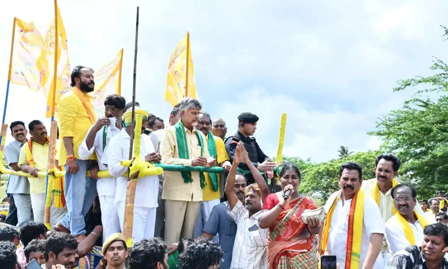 అయితే ఈ సందర్భంగా వైసీపీ మహిళా రైతు ప్రభావతి చంద్రబాబును కలిశారు. రేపు ఉదయం తన కుమార్తెకు పరీక్ష ఉందని చేతిలో చిల్లిగవ్వలేదని చంద్రబాబు ముందు ఆవేదన వ్యక్తం చేశారు. దీంతో వైసీపీ నేత ప్రభావతిని ఓదార్చిన చంద్రబాబు వెంటనే ఆమెకు ఆర్థిక సాయం అందించేందుకు సిద్ధమయ్యారు. కుమార్తె చదువు ఆగిపోకూడదని ప్రభావతికి అక్కడిడక్కడే రెండు లక్షల 30 వేల రూపాయల ఆర్దిక సాయం అందజేశారు. దీంతో వెంటనే తాను వైసీపీ కండువాని ఈ క్షణమే తీసేసి తెలుగుదేశం పార్టీ కండువా కప్పుకుంటానని ప్రభావతి చెప్పారు. ఈ సందర్భంగా తాను సాయం చేసేటప్పుడు పార్టీలు చూడనని చంద్రబాబు చెప్పారు.