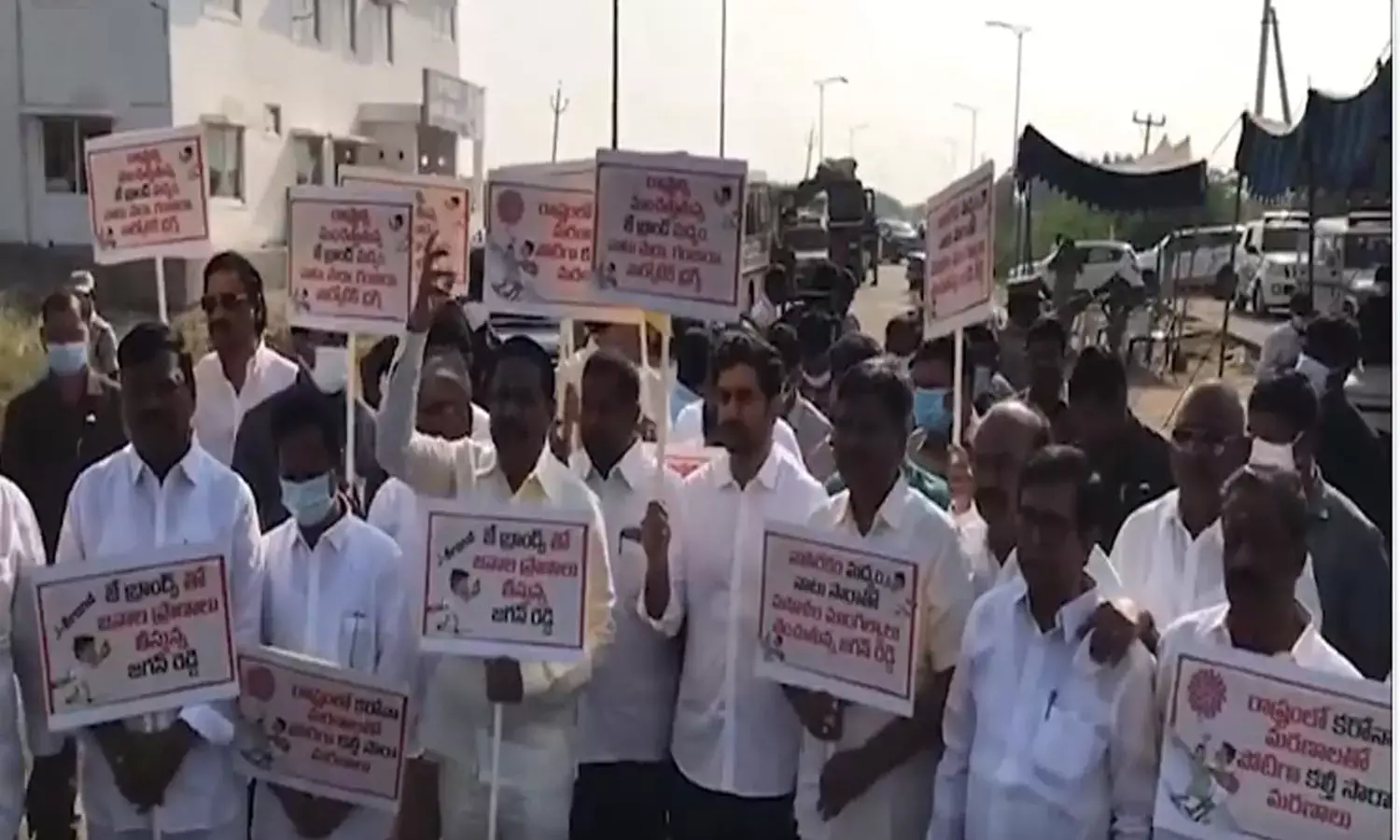నాటుసారా మరణాలపై తెలుగుదేశం పార్టీ తన నిరసనలను కొనసాగిస్తుంది. ఈరోజు కూడా నారా లోకేష్ నేతృత్వంలో నిరసన తెలిపారు.