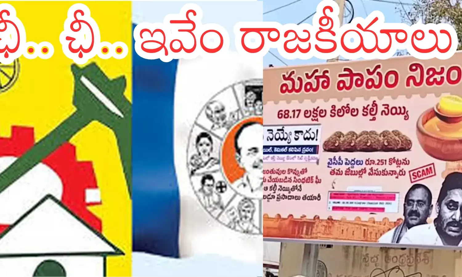 ఇప్పుడు టీడీపీ కూడా తిరుమల తిరుపతి దేవస్థానంలో కల్తీ నెయ్యి లడ్డూలో కలిసిందంటూ టీడీపీ నేతలు రాష్ట్రంలో అనేక చోట్ల ఫ్లెక్సీలు వేశారు. పల్నాడు, ప్రకాశం, గుంటూరు జిల్లాల్లో ఈ ఫ్లెక్సీలు వెలిశాయి. కల్తీ నెయ్యితో తిరుమల భక్తుల మనోభావాలను దెబ్బతీసిందంటూ ఫ్లెక్సీలు వేసి పసుపు పార్టీ తమ్ముళ్లు ప్రచారానికి తెరలేపారు. అయితే సీబీఐ ఛార్జిషీట్ లో నెయ్యిలో కల్తీ జరగలేదని చెప్పిందని, అబద్ధపు ప్రచారం చేయవద్దంటూ వైసీపీ నేతలు ఆ ఫ్లెక్సీలను చించివేస్తున్నారు. దీంతో రెండు పార్టీల నేతలు, కార్యకర్తల మధ్య ఘర్షణ జరుగుతుంది. గుంటూరులో ఏర్పాటు చేసిన మాజీ మంత్రి అంబటి రాంబాబు ఈ ఫ్లెక్సీని తొలగించడంతో టీడీపీ కార్యకర్తలు ఆందోళనకు దిగారు.