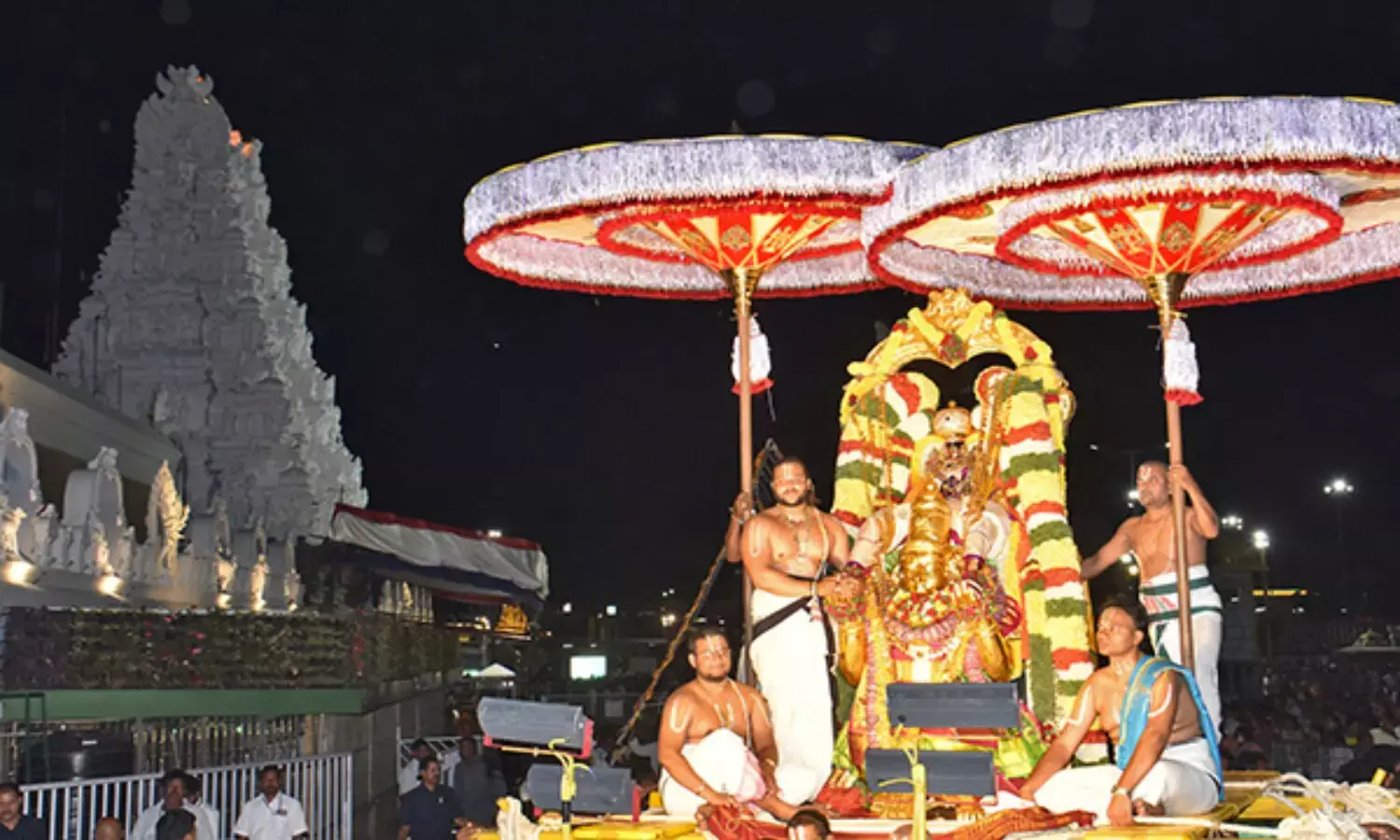 గరుడపంచమి పర్వదినాన్ని పురస్కరించుకొని సోమవారం రాత్రి తిరుమలలో శ్రీమలయప్పస్వామివారు తనకు ఇష్టవాహనమైన గరుడునిపై తిరుమాడ వీధులలో ఊరేగి భక్తులను కటాక్షించారు. రాత్రి 7 నుండి 9 గంటల నడుమ గరుడ వాహనసేవ అత్యంత రమణీయంగా జరిగింది. శ్రీవారి వాహనాల్లోను, సేవకుల్లోను అగ్రగణ్యుడు గరుడుడు. ప్రతి ఏడాదీ గరుడ పంచమిని శుక్ల పక్షం ఐదవ రోజు ఘనంగా నిర్వహిస్తారు. నూతన దంపతులు తమ వైవాహిక జీవితం ఆనందదాయకంగా వుండేందుకు, స్త్రీలు తమకు పుట్టే సంతానం గరుడునిలాగా, బలశాలిగా ఉండేందుకు ఈ సందర్భంగా ”గరుడ పంచమి” పూజ చేస్తారు.