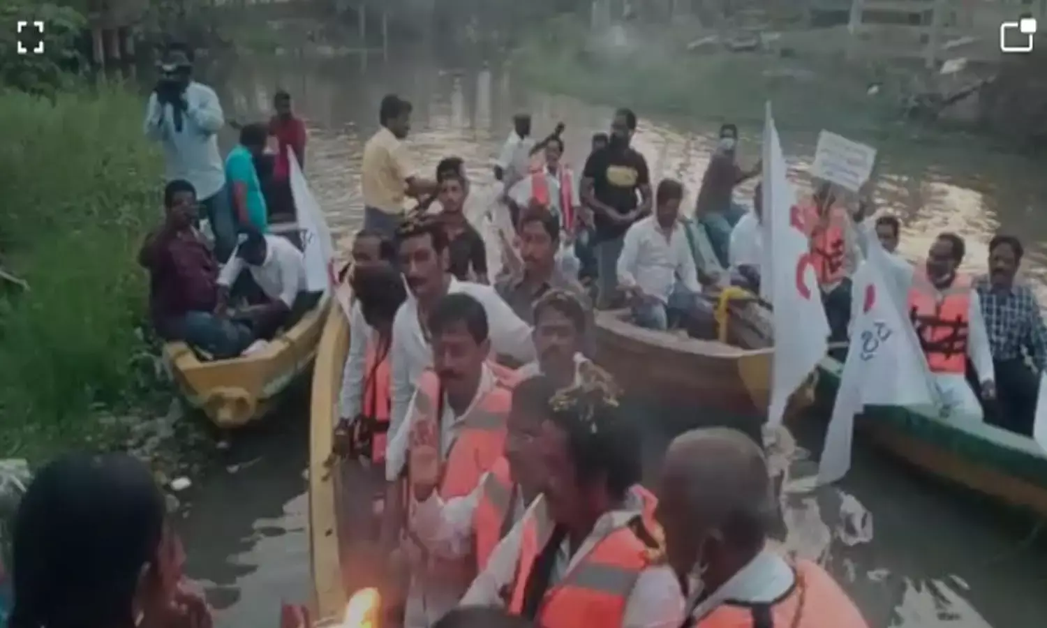 కొత్తపల్లి పడవలతో నిరసన
