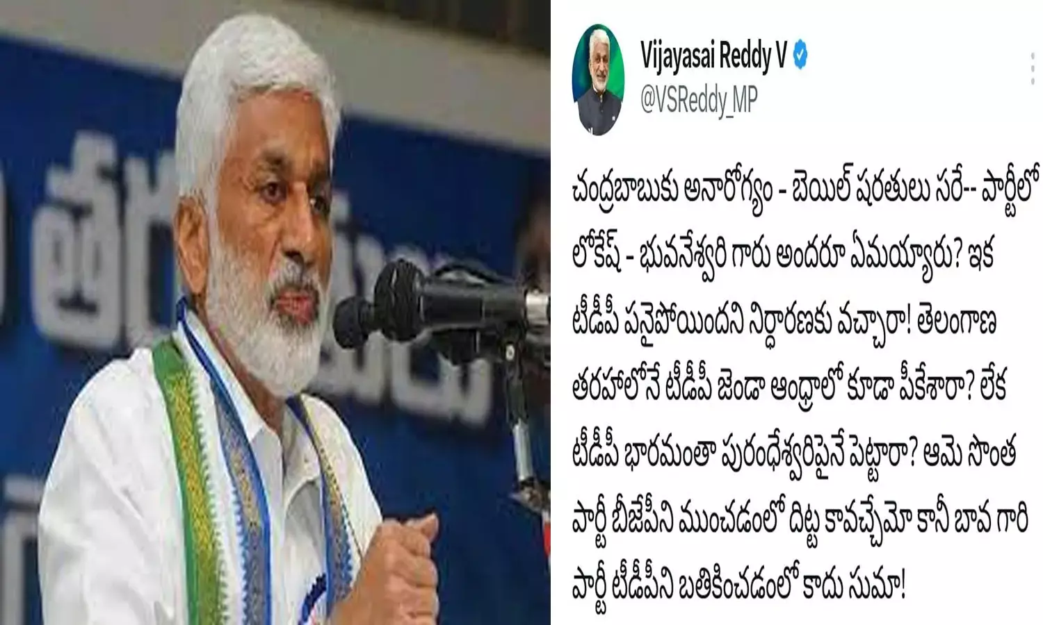 వైసీపీ ఎంపీ విజయసాయిరెడ్డి మరోసారి బీజేపీ రాష్ట్ర అధ్యక్షురాలు పురంద్రీశ్వరిని లక్ష్యంగా చేసుకుని ట్వీట్ చేశారు