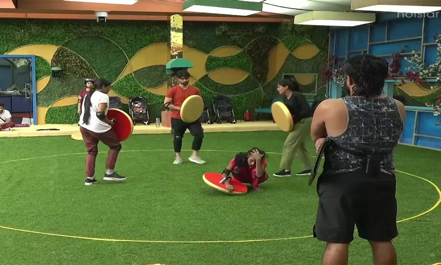 కెప్టెన్సీ పోటీదారుల కోసం బిగ్ బాస్ మరో టాస్క్ పెడతాడు. ఆ టాస్క్ లో అర్జున్ కల్యాణ్, ఇనయా, ఫైమా, ఆరోహి, కీర్తి భట్ పోటీ పడతారు. ఒక రౌండ్ సర్కిల్ లో నిల్చొని.. చేతుల్ని ఉపయోగించకుండా షీల్డ్ తో మిగతా వారిని బయటికి తోసేయాలనేది టాస్క్. ఈ టాస్క్ లో ముందుగా అమ్మాయిలంతా కలిసి అర్జున్ ని బయటకు పంపేస్తారు. తర్వాత నలుగురు అమ్మాయిలు పోటీ పడగా.. ఇనయా విన్నర్ అవుకుంది. ఈ టాస్క్ కి రేవంత్ సంచాలక్ గా వ్యవహరించాడు. ఫైమా చేతుల్ని ఉపయోగించడం, కింద కూర్చోవడంతో ఆమె ఔట్ అని చెప్తాడు. దాంతో ఫైమా ఏడుస్తుంది.