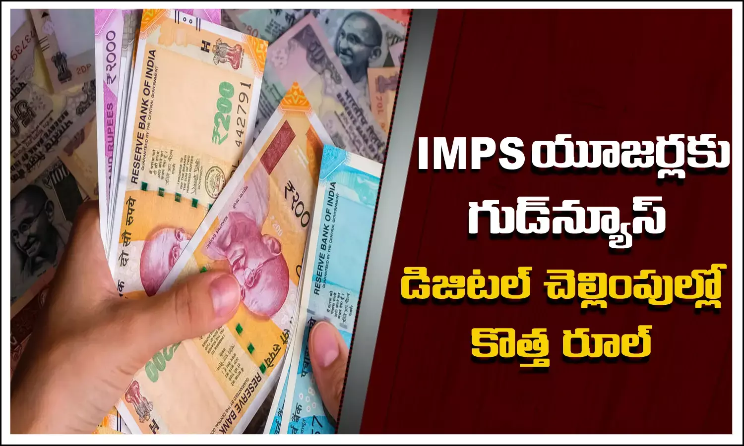 నెట్ బ్యాంకింగ్ నగదు బదిలీలో IMPS ద్వారా చెల్లింపు ప్రధాన ఎంపికలలో ఒకటి. నేషనల్ పేమెంట్ కార్పొరేషన్ ఆఫ్ ఇండియా (NPCI) కొత్త నిబంధనలు తీసుకువస్తోంది. తద్వారా ఐఎంపీఎస్ లావాదేవీలు, ప్రభావవంతంగా మారతాయి. ఈ పద్ధతి ద్వారా త్వరలో వినియోగదారులు రూ. 5 లక్షల వరకు బదిలీ చేసుకునే సదుపాయం రానుంది.