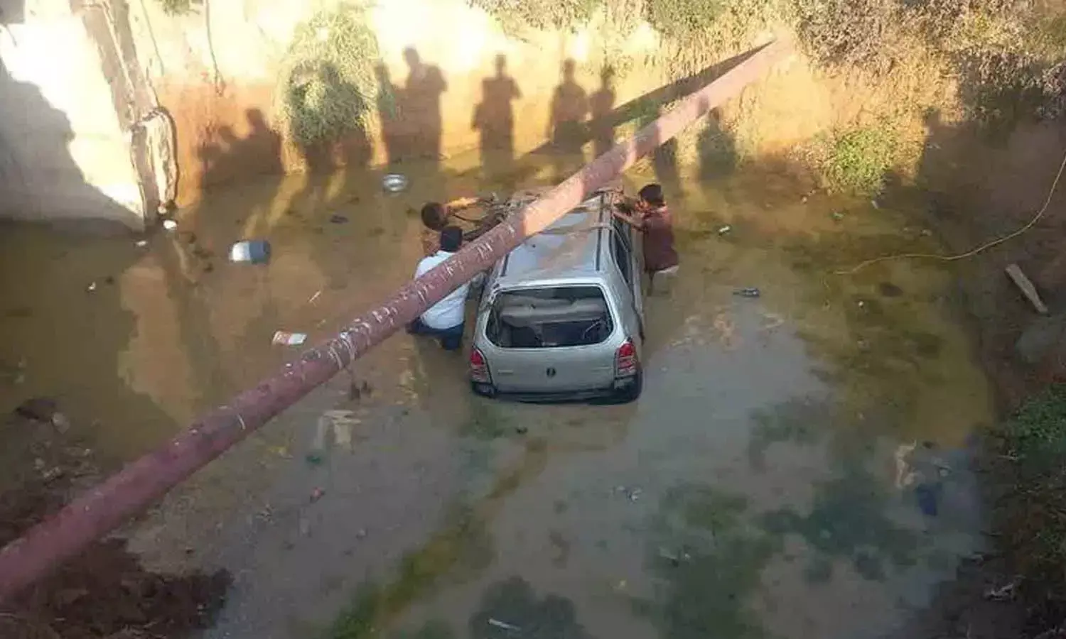 కారు గుంతలో పడినప్పుడు మొత్తం ఆరుగురున్నారు. వెంటనే ఆసుపత్రికి తరలించగా మరొకరు మరణించారని పోలీసులు తెలిపారు. మరణించిన వారిలో ఇద్దరు చిన్నారులు, ఇద్దరు మహిళలు ఉన్నారు. ఓవర్ స్పీడ్ కారణమని పోలీసులు ప్రాధమికంగా నిర్ధారణకు వచ్చారు. మృతదేహాలను పోస్టుమార్టం నిమిత్తం ఆసుపత్రికి తరలించారు. మృతులు ఎవరనేది ఇంకా తెలియరాలేదు. పోలీసులు కేసు నమోదు చేసి దర్యాప్తు చేస్తున్నారు.