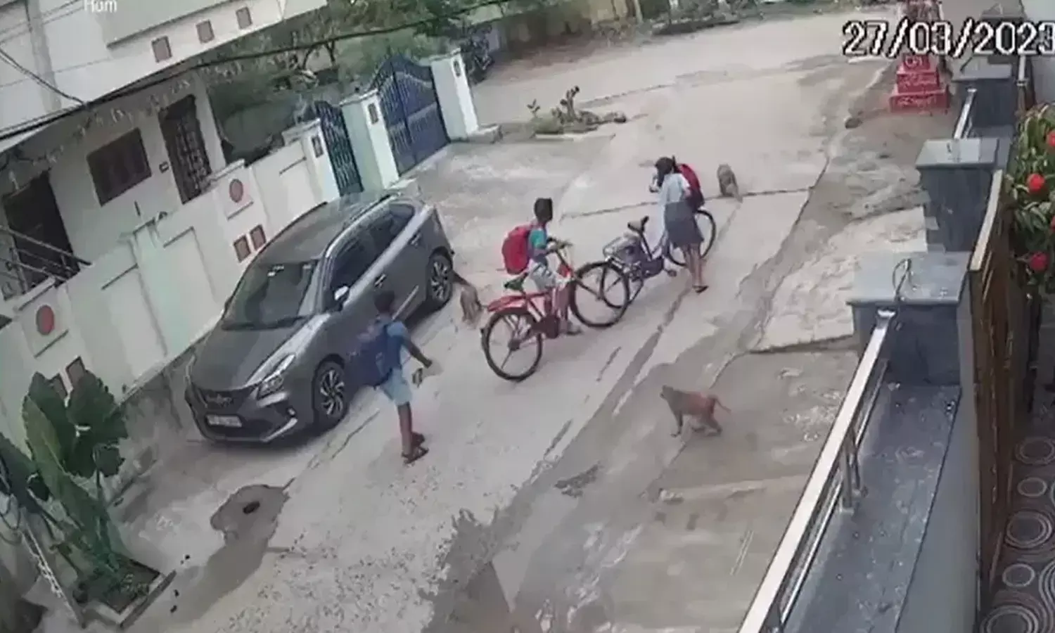 ఇంతలో ఓ వ్యక్తి అటుగా రావడంతో.. ఆయన ఆ కోతులను చెదరగొట్టారు. దాంతో విద్యార్థులకు ప్రాణాపాయం తప్పింది.