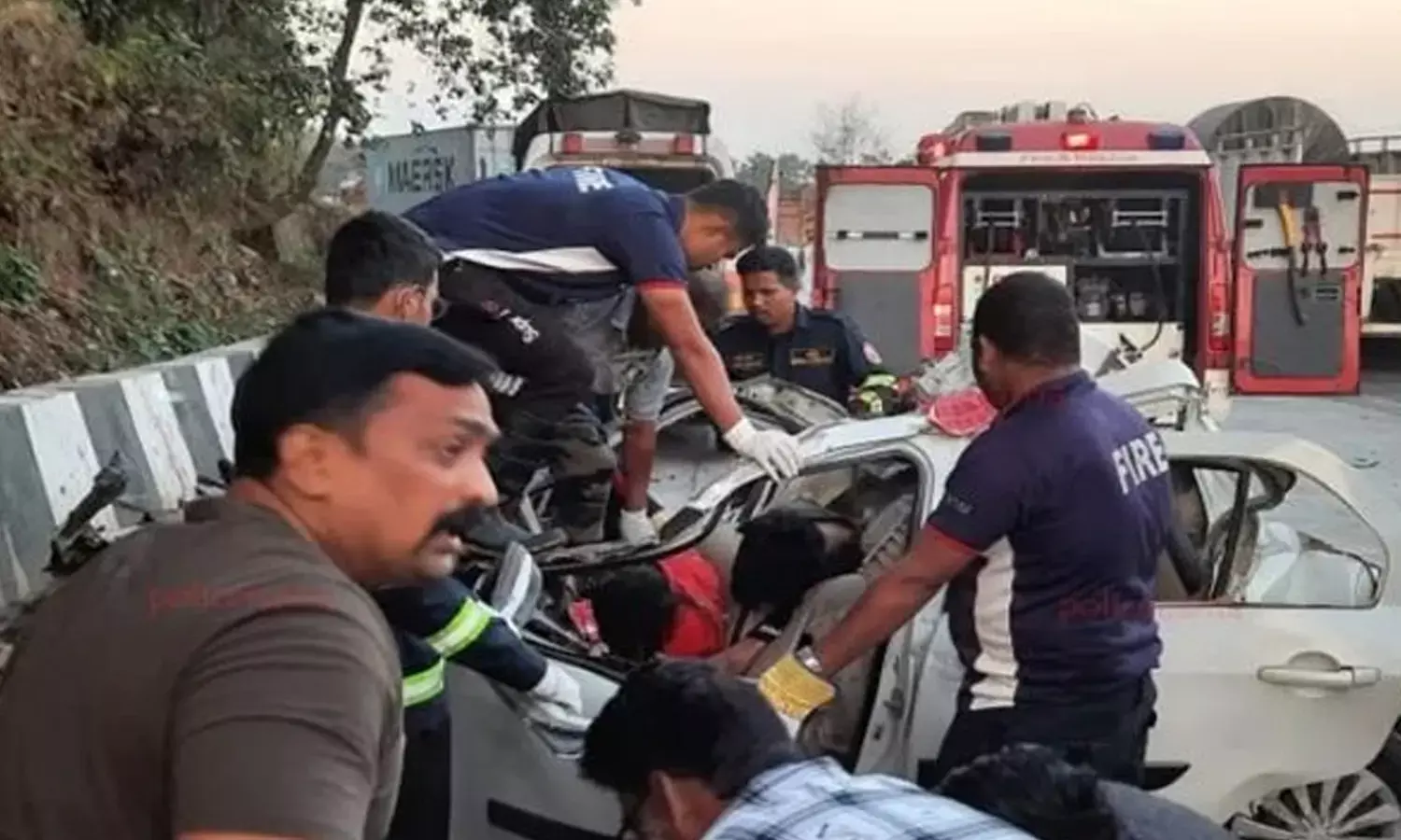 కంటైనర్ ను ఢీ కొట్టిన కారు.. కారుని ఢీ కొట్టిన ట్రక్కు: నలుగురి మృతి