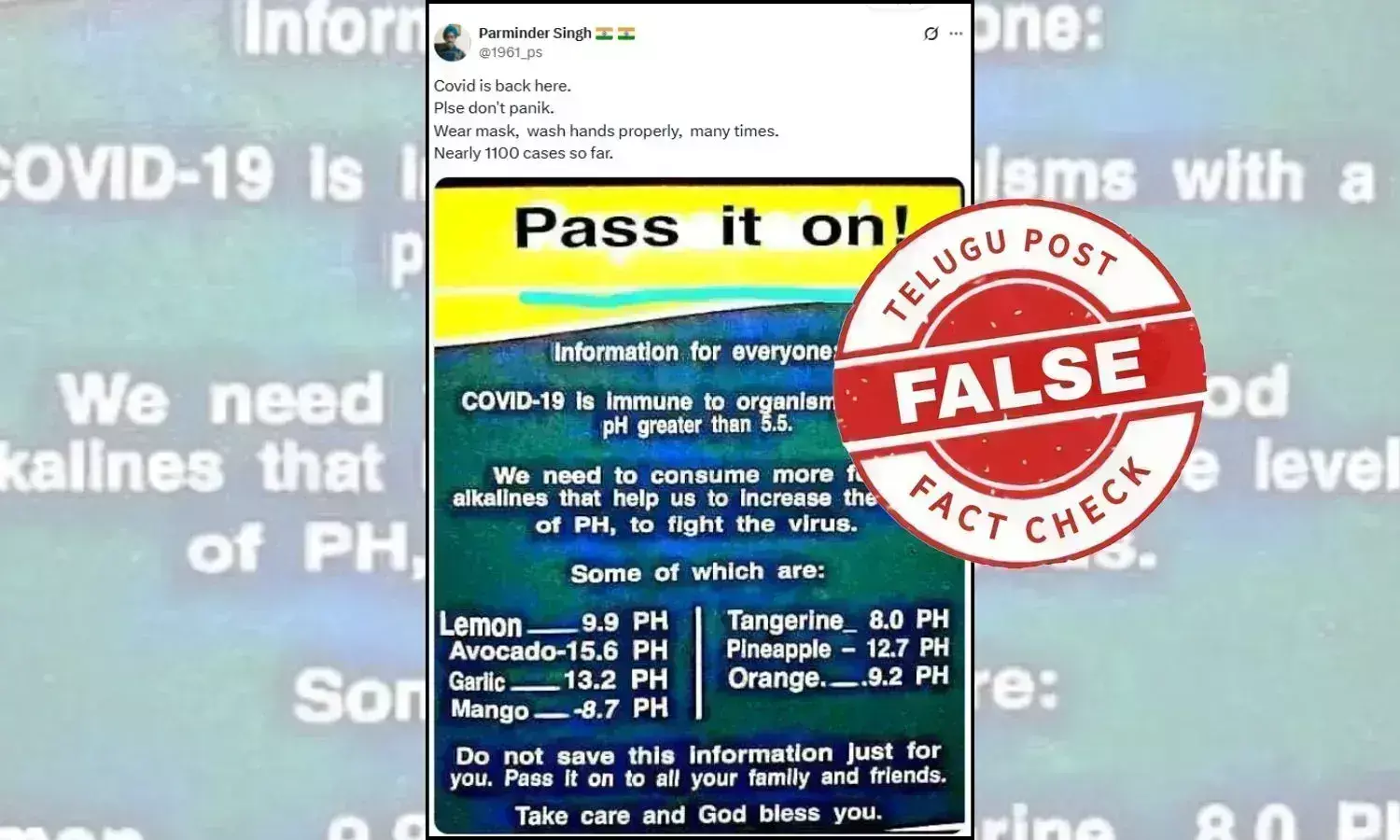 The claim that consumption of alkaline foods can resist Covid was also viral in the year 2020 and is seen again on social media now as the Covid-19 cases are surging. Several fact-checking organisations debunked this claim, citing expert advice.