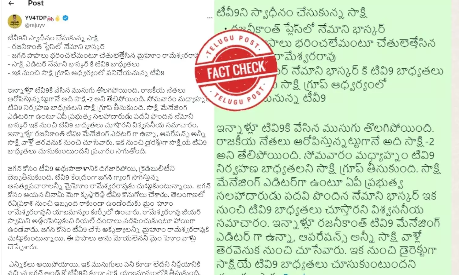 Fact Check: Rumours on Sakshi’s acquisition of TV9 are false