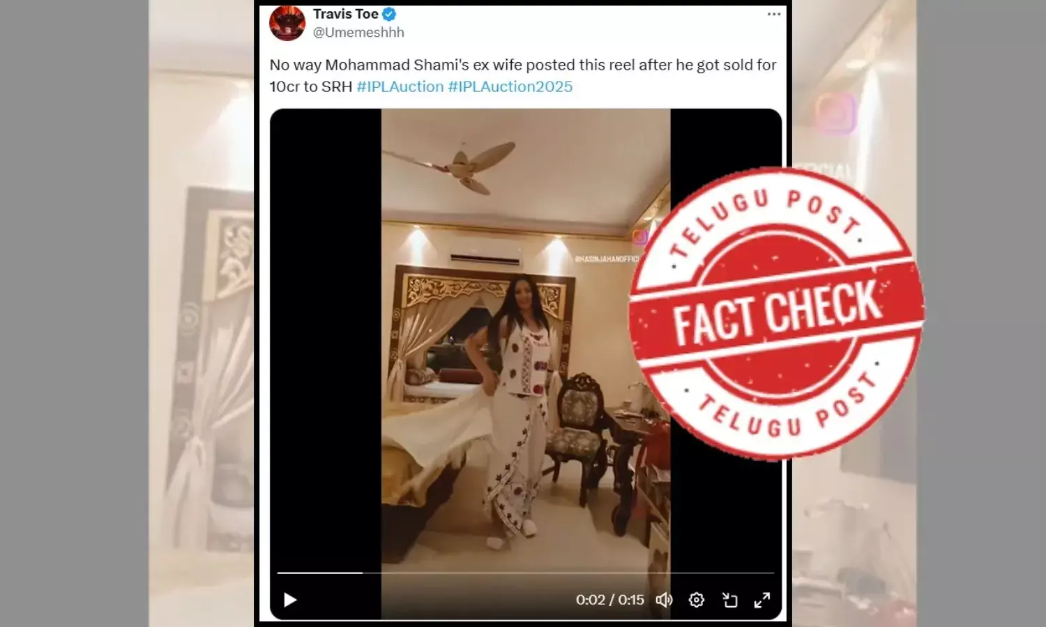 Hence, the video reel of Mohammed Shami’s ex wife Hasin Jahan was posted well before the IPL auction in which Mohammed Shami was sold to Sunrisers Hyderabad for Rs 10 crore. The video was posted on November 14, 2024 and the IPL auction took place on November 24, 2024. The claim is Misleading.