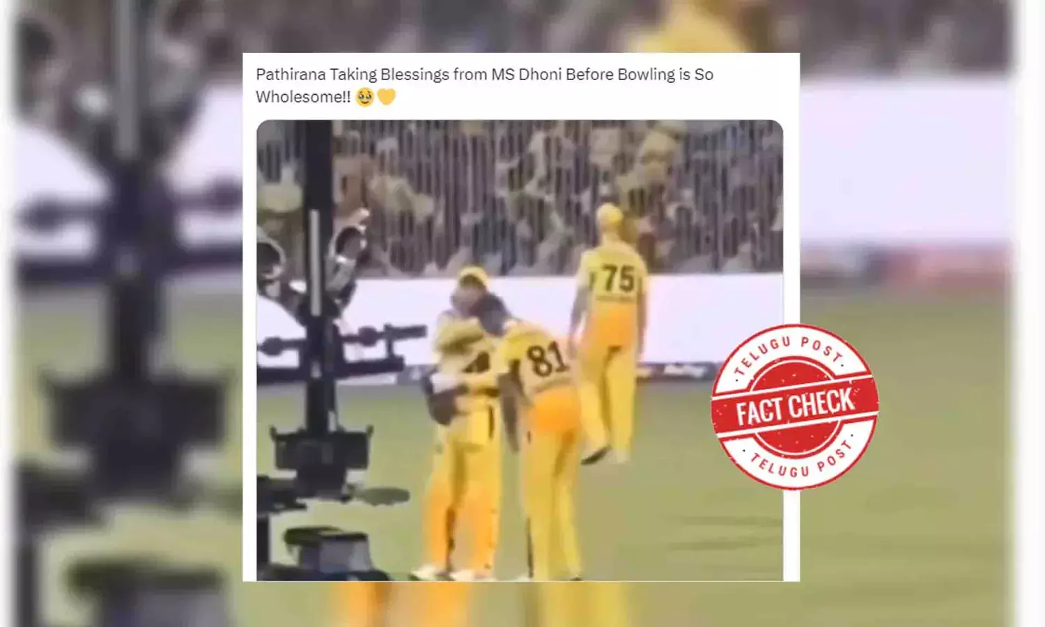 A video clip circulating on social media with the claim: “Matheesha Pathirana touches MS Dhoni’s feet during the IPL match”