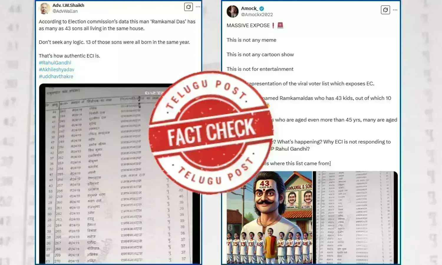 Meanwhile, an image showing a voter list published by the Election Commission is in circulation with the claim that the list shows a man named Ramkamal Das listed as a father to 43 sons who all live in the same house. Among these sons, 13 of them are born in the same year and all of them are 37 years old. Some social media users shared the image with captions like “According to Election commission’s data this man ‘Ramkamal Das’ has as many as 43 sons all living in the same house. Don’t seek any logic. 13 of those sons were all born in the same year. That’s how authentic ECI is. #RahulGandhi #