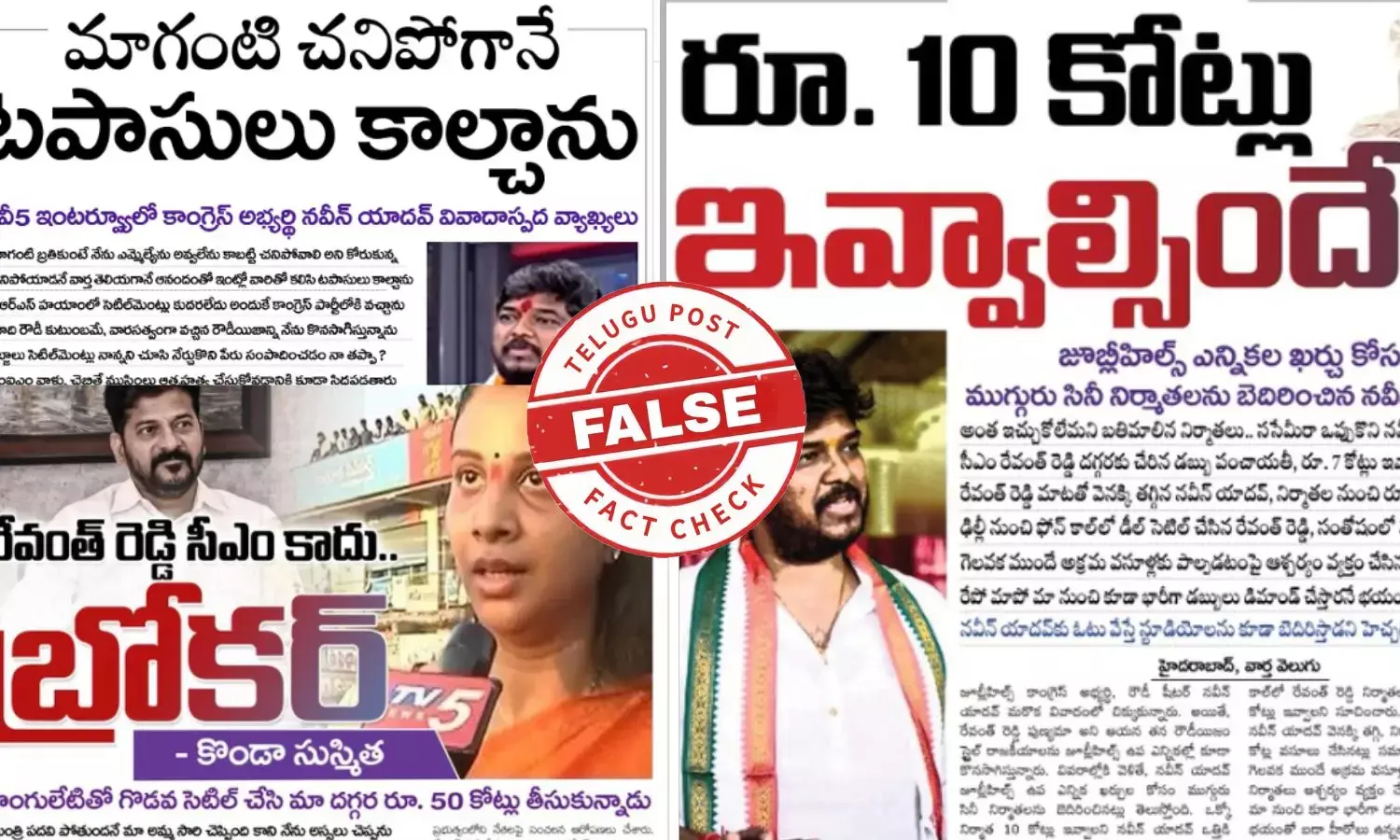Fact Check: Fake Telugu Newspaper Clippings Target Naveen Yadav and Konda Sushmita Ahead of Jubilee Hills By-Election