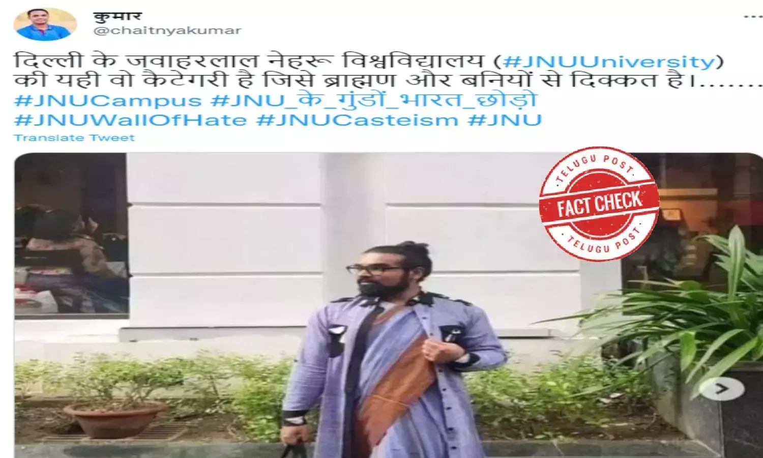 ఫ్యాక్ట్ చెక్: వైరల్ ఫోటోలో ఉన్న వ్యక్తి జెఎన్యులో బ్రాహ్మణ వ్యతిరేక నిరసనలకు మూలకారణం కాదు
