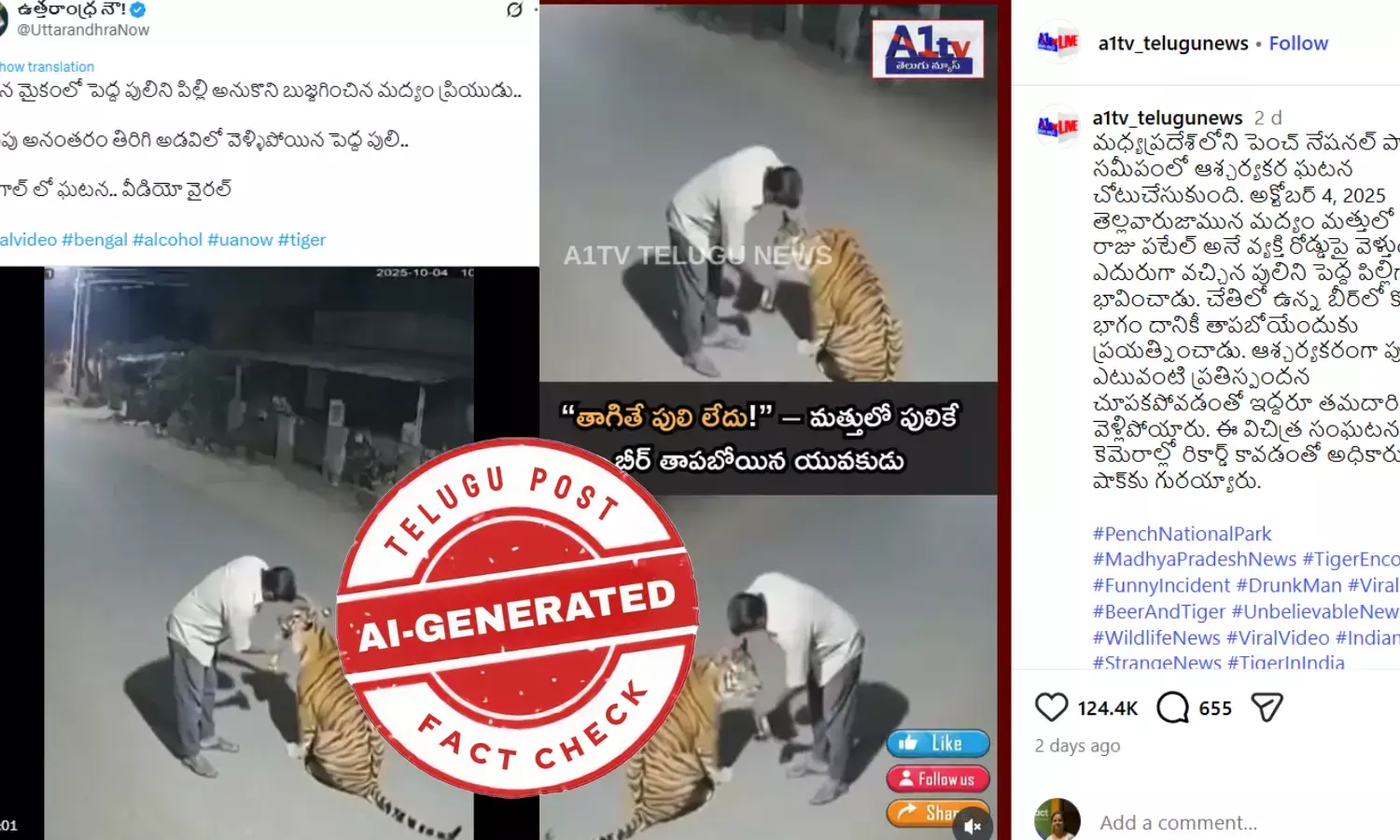 The claim that an intoxicated man fed liquor to a tiger inside the Pench Tiger Reserve is completely false. The video circulating on social media is AI-generated and not genuine CCTV footage. No such incident occurred in Pench or any part of India.