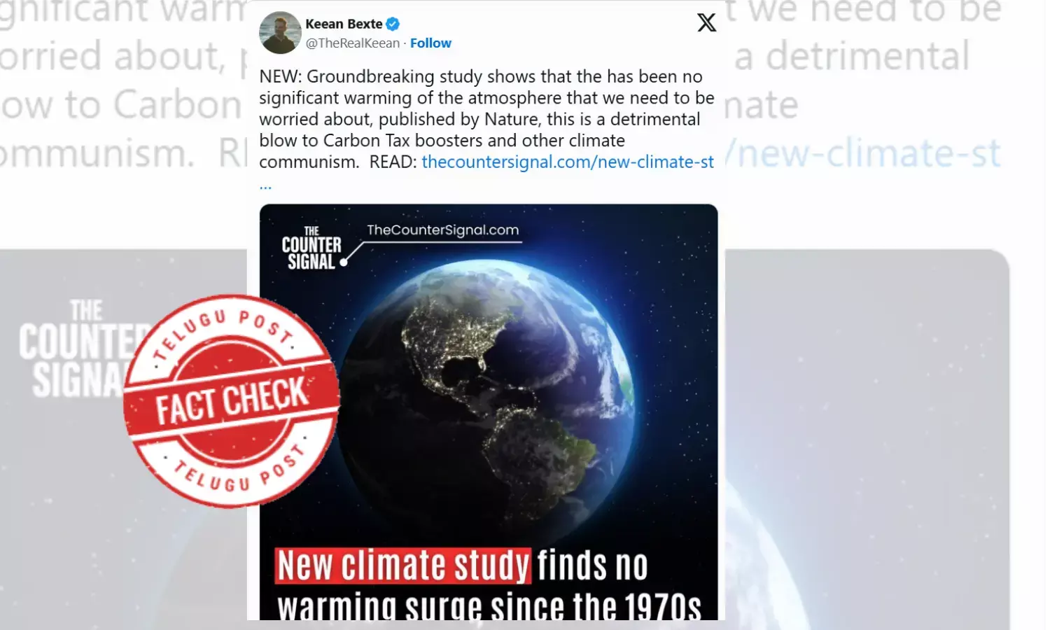 Following the October 14, 2024 publication of Nature study, social media users began claiming it proved that global warming hasn't increased since the 1970s, suggesting this as evidence against climate change.