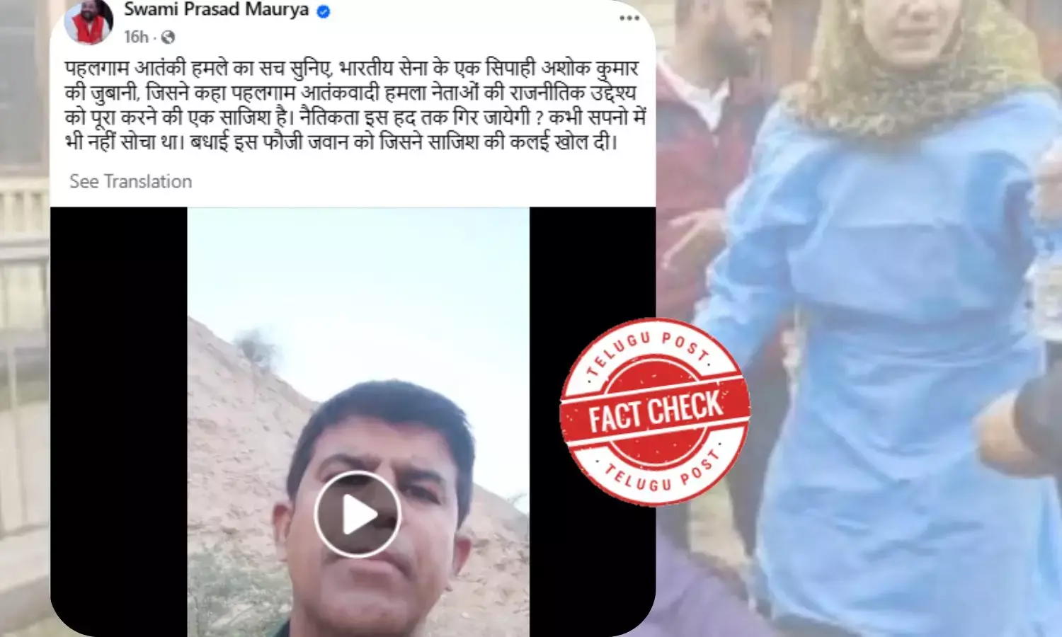 Sharing this video on his Facebook, Apni Janata Party (AJP) leader Swami Prasad Maurya wrote, “Listen to the truth about the Pahalgam terror attack directly from an Indian Army soldier, Ashok Kumar. He said the Pahalgam terrorist attack is a conspiracy to fulfill the political objectives of the leaders. I had never imagined even in my dreams that they would stoop to this level. Congratulations to this brave soldier who exposed the conspiracy.” (at the time of filing this story, Maurya had deleted his Facebook post ).