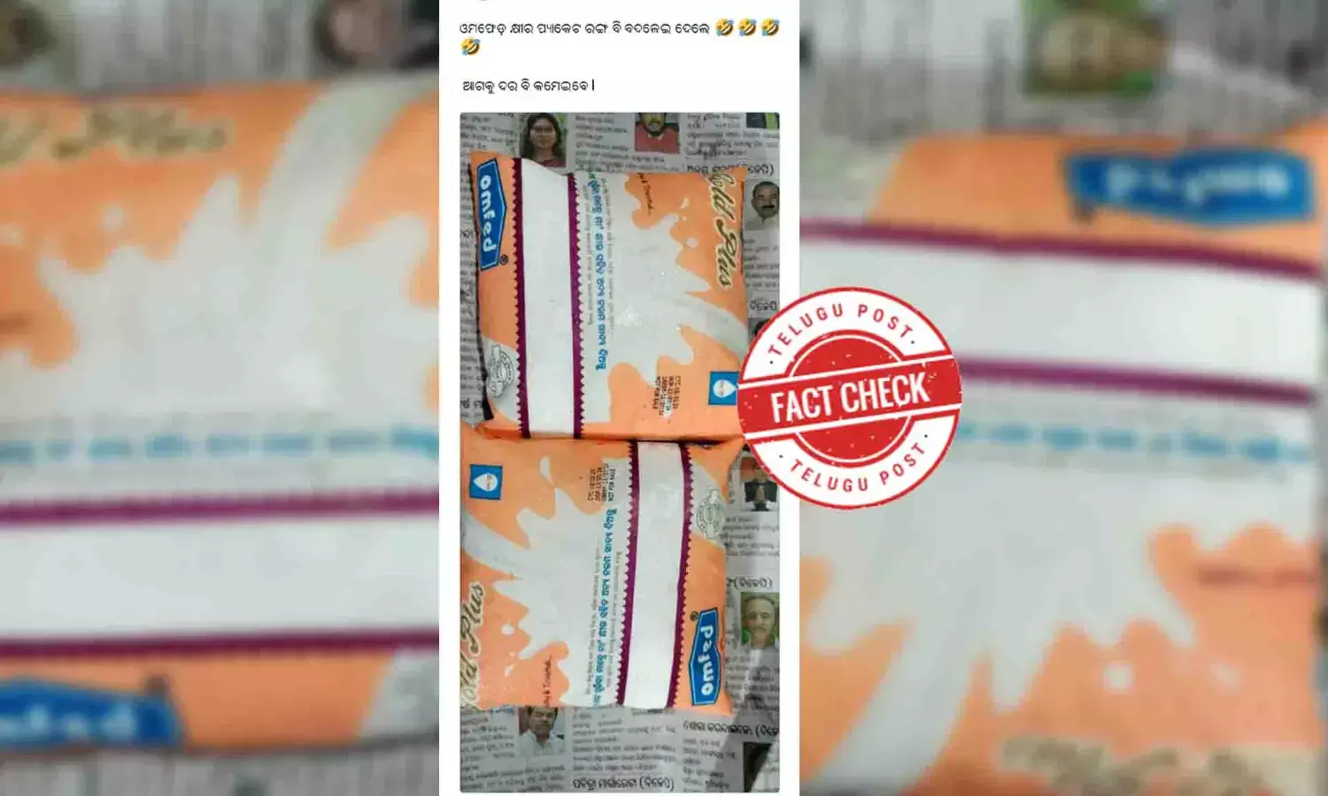 In this back drop, an image of two milk packets are roaming in social media with the Odia Text "ଓମ୍ଫେଡ଼ କ୍ଷୀର ପ୍ୟାକେଡ ରଙ୍ଗ ବି ବଦଳେଇ ଦେଲେ"