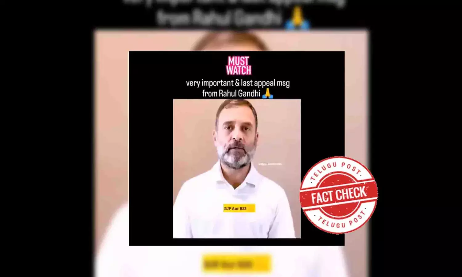 A 30- second video is circulating on social media showing Congress leader Rahul Gandhi urging people to vote. In the video, Rahul states that while the INDIA and Congress party are trying to destroy the Constitution and democracy of India, the BJP and RSS are working to save it. He also urges people to support the BJP and RSS to protect democracy.