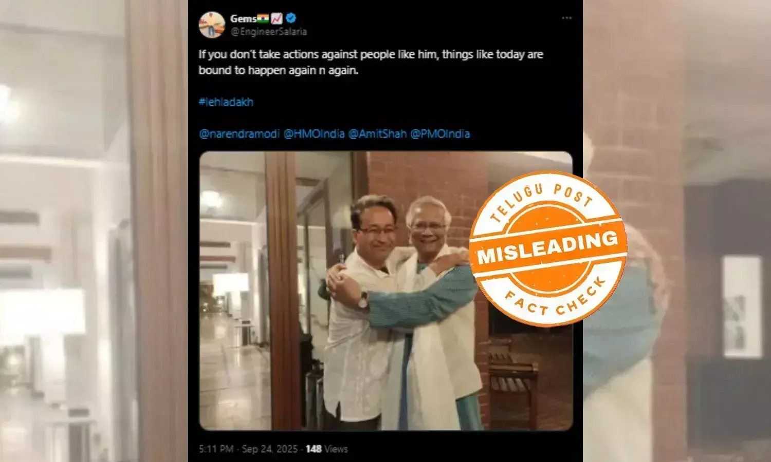 The viral claim is misleading. The image is old and originally shows Sonam Wangchuk with Nobel Peace Prize winner Dr. Muhammad Yunus, not a recent meeting with Bangladesh’s Chief Advisor. It is being shared out of context with a misleading caption.
