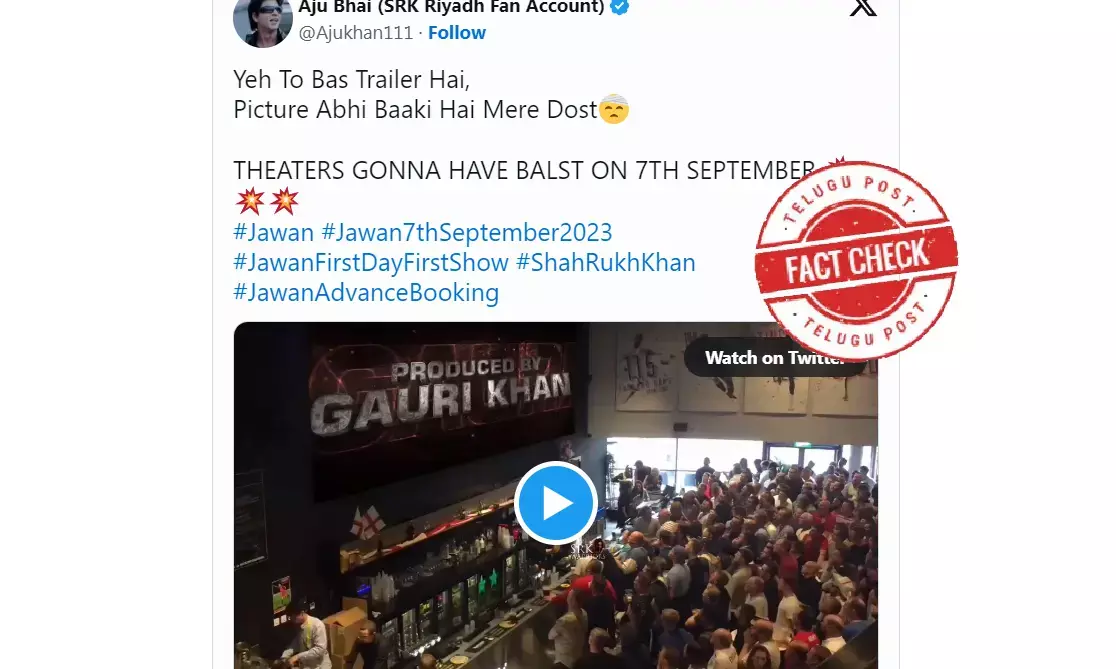 Fact Check: Video celebrating release of Shah Rukh Khan-starrer "Jawan" trailer by his fans is fake